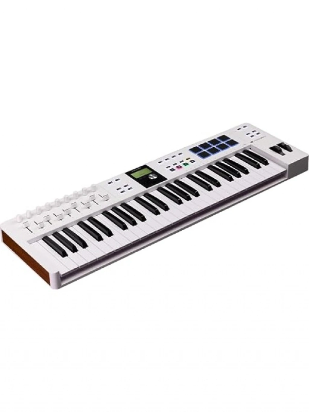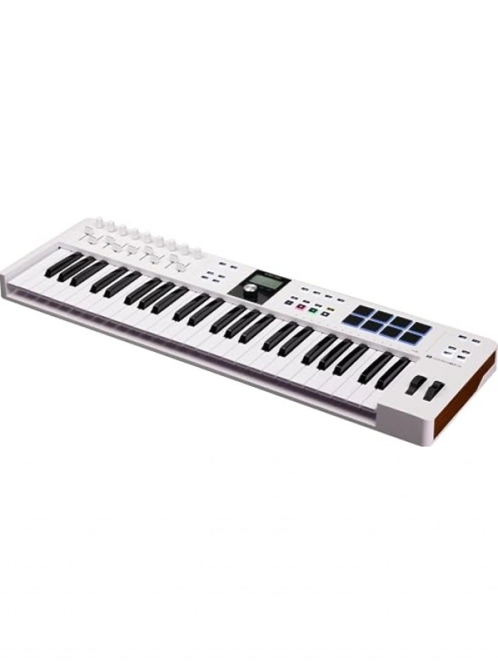 Müzik prodüksiyonu için mükemmel bir yardımcı olan bu MIDI kontrolcü, 49 tuşlu ve hız hassasiyetine sahip bir klavye ile donatılmıştır. 9 döner encoder ve 9 fader ile zengin bir kontrol imkanı sunar. 2.5 inç LCD ekranı sayesinde tüm ayarları kolayca yapmanıza yardımcı olur. 8 dokunma hassasiyetli pad ile birlikte gelen bu ürün, müzik yapımında yaratıcılığınızı artıracak çeşitli özelliklere sahiptir. Analog Lab V ile entegre çalışarak, popüler müzik yazılımları ile uyumlu bir deneyim sunar.