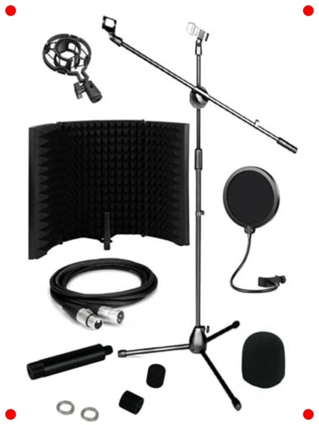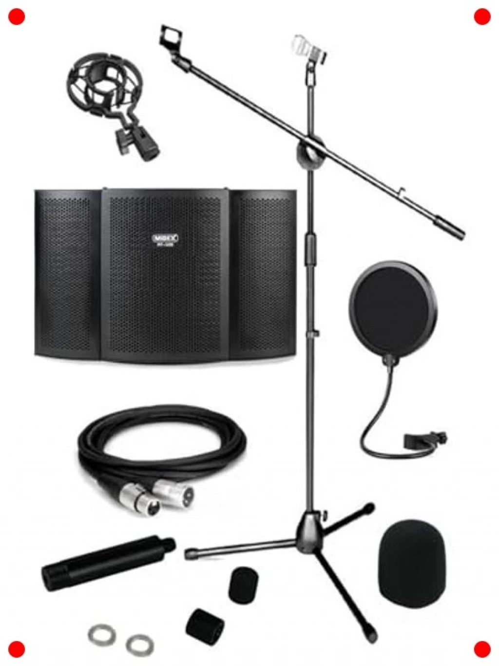 Kayıt kalitenizi önemli ölçüde artırmak için tasarlanmış bu set, stüdyo kalitesinde akustik iyileştirme sunar. Mikrofon ses yalıtım paneli, dış gürültüleri ve oda yansımalarını azaltarak daha temiz ve odaklanmış kayıtlar yapmanızı sağlar. Dayanıklı standı ve gerekli bağlantı kabloları ile birlikte gelir. Ayrıca, plosivleri (P, B gibi patlayıcı sesler) filtreleyen bir pop filtre de içerir. Vokal kayıtları, podcast yayınları ve enstrüman mikrofonlaması için idealdir. Kurulumu kolay ve taşınabilir yapısıyla her yerde profesyonel sonuçlar almanızı sağlar.
