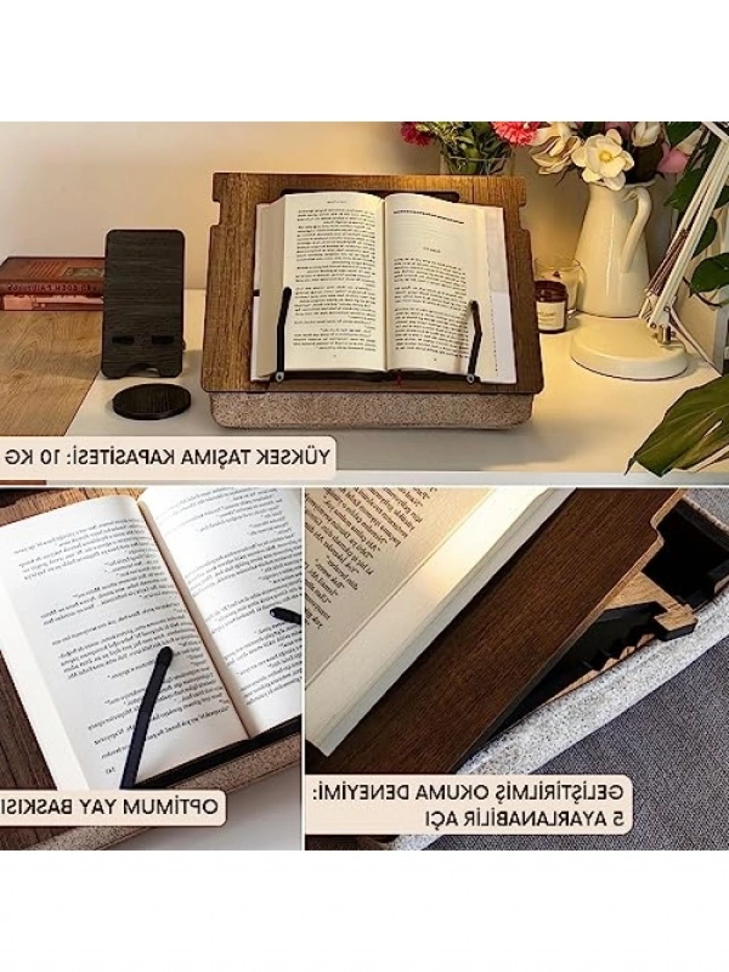 Bu kitap okuma standı, 8 mm kalınlığında ahşaptan üretilmiştir ve çizilmeye, aşınmaya karşı dayanıklıdır. Yumuşak minderi sayesinde konforlu bir okuma deneyimi sunar. Beş farklı açıda ayarlanabilir yapısıyla, dik duruşunuzu korumanıza yardımcı olur. Katlanabilir tasarımı ile taşınabilir ve saklama alanı ile pratiklik sağlar.