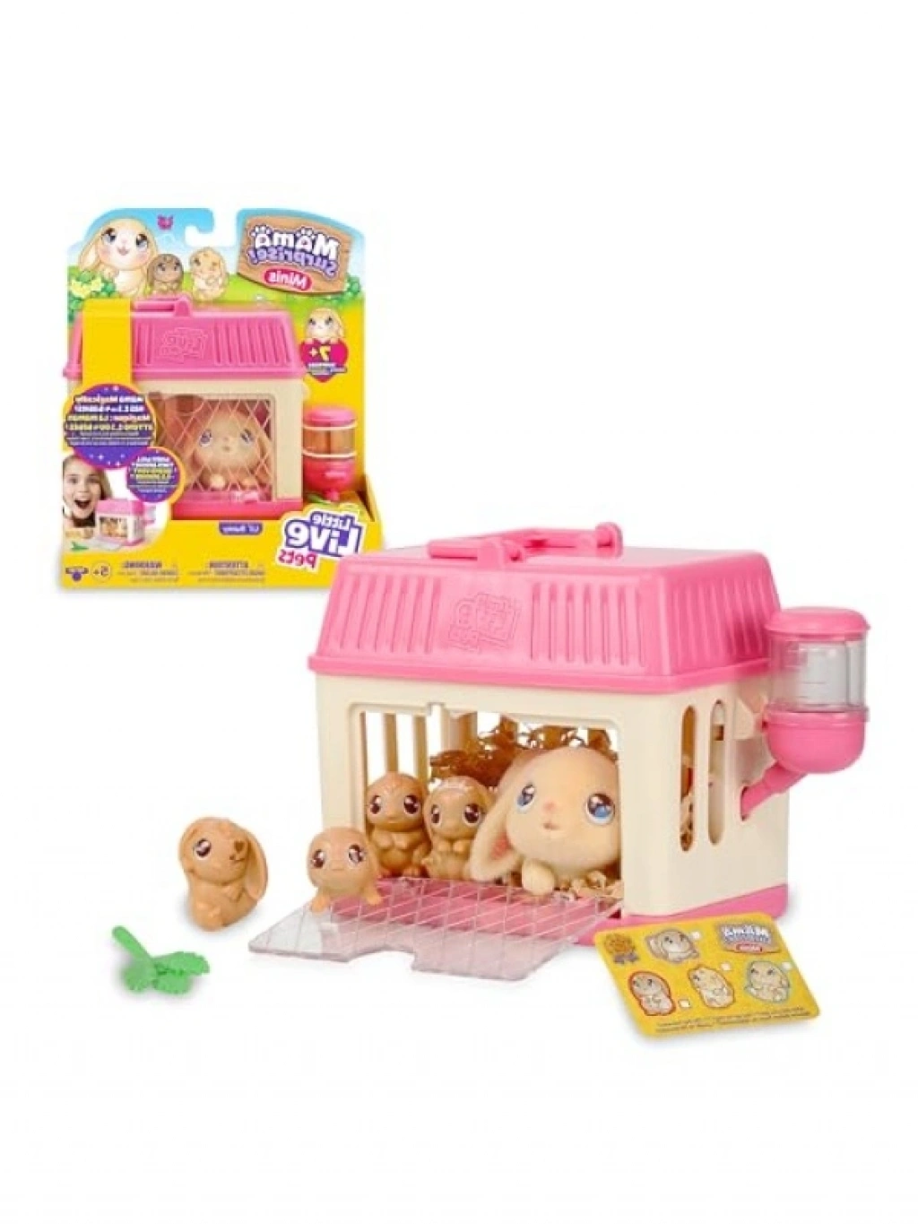 Mini boyutlarda tasarlanmış bu anne tavşan ve yavruları seti, çocuklar için eğlenceli bir oyun deneyimi sunar. Paketteki anne tavşanın bakımı için besleme işlemi yapılabilir ve gözleri kapanır. Mini kafeste, kağıt saman üzerine yerleştirilen anne tavşan, 2, 3 veya 4 yavru doğurma özelliğine sahiptir. Kafesin yan tarafındaki kilit çıkarılabilir ve su şişesi doldurulabilir. Set içinde dört farklı pozda bebek tavşan bulunur ve bebekler için sevimli fiyonk veya önlük de pakete dahildir. Bu set, çocukların hayal gücünü geliştirirken, aynı zamanda sorumluluk duygusu aşılayacaktır.