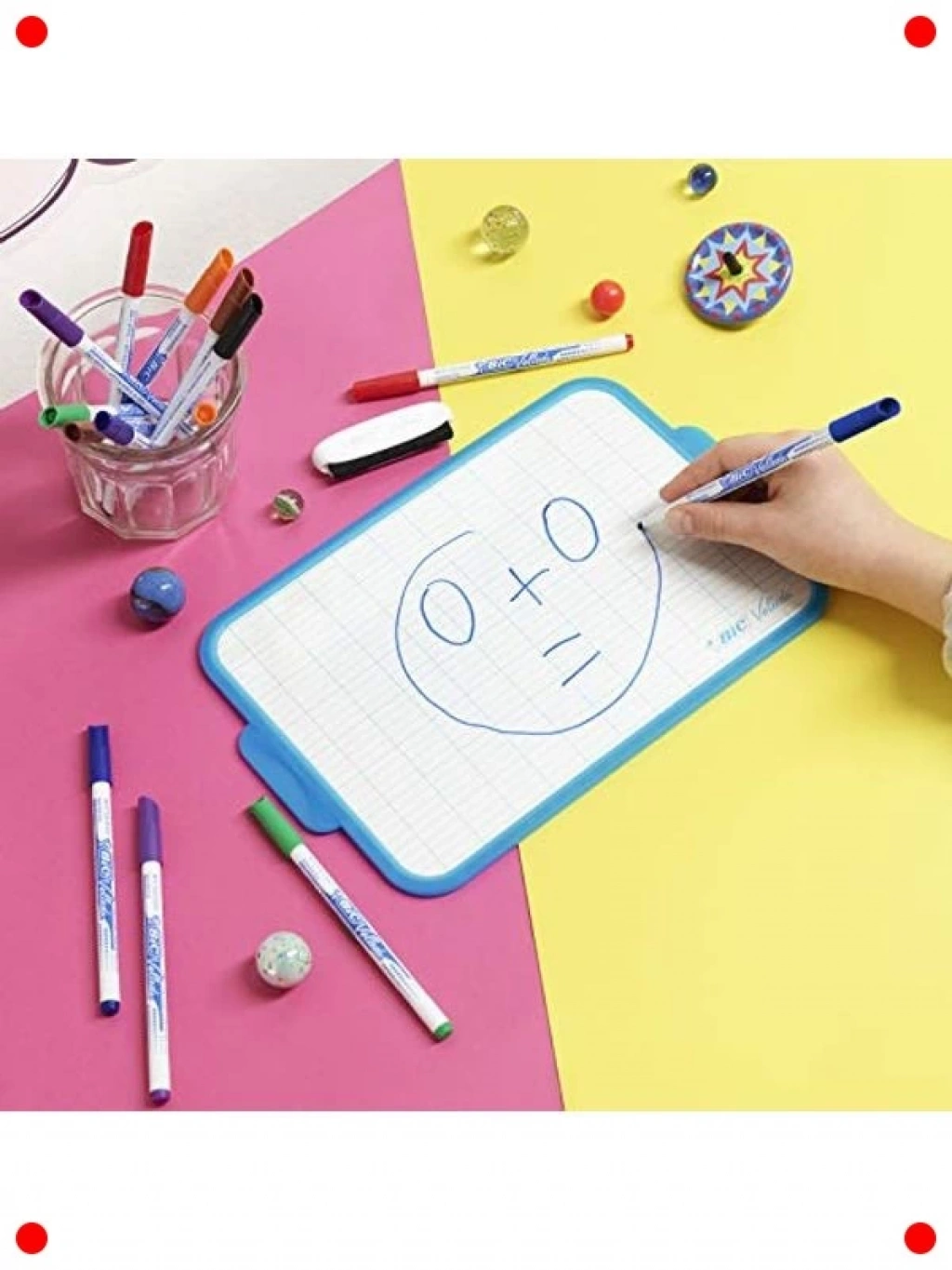 Kompakt beyaz tahta seti ile yaratıcılığınızı ve üretkenliğinizi her yere taşıyın. İster ofiste, ister evde, ister okulda olsun, bu mini tahta tüm not alma, beyin fırtınası veya çizim ihtiyaçlarınız için idealdir. Parlak beyaz yüzeyi sayesinde yazılarınız net görünür ve özel silgisi ile iz bırakmadan kolayca temizlenir. Çocukların ders çalışması, oyun oynaması veya yetişkinlerin hızlı notlar alması için mükemmeldir. Yanında gelen özel kalem ve silgi ile kutudan çıkar çıkmaz kullanıma hazır, böylece hiç vakit kaybetmezsiniz. Küçük boyutuyla masanızda az yer kaplar ve kolayca saklanabilir. Öğrenmeyi ve düşünmeyi eğlenceli hale getiren pratik bir yardımcıdır, her an kullanıma hazırdır.