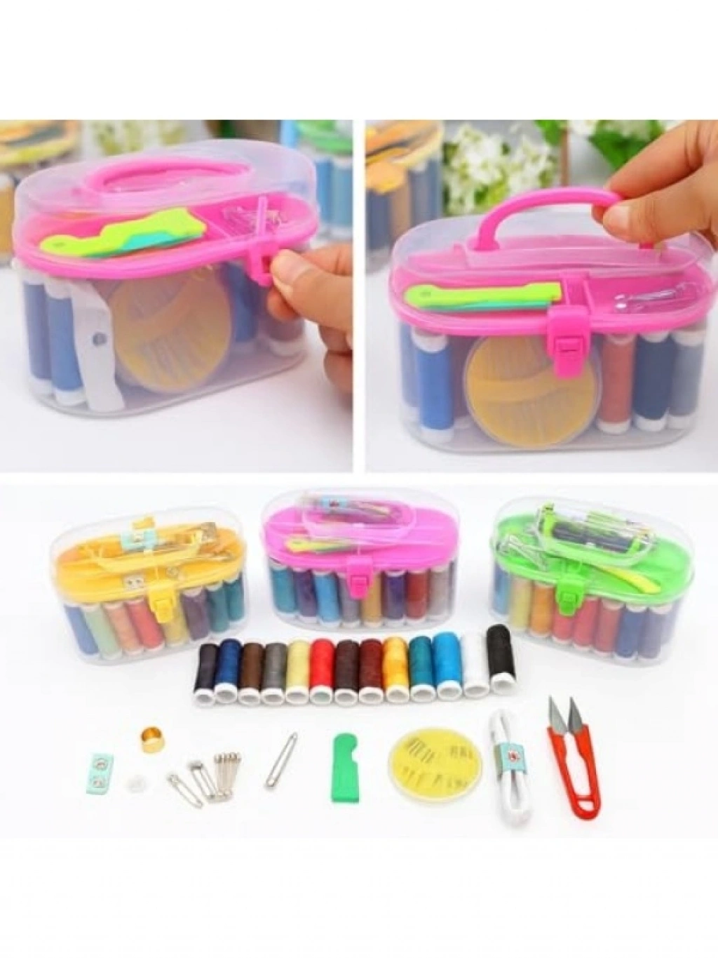 Taşınabilir mini dikiş seti, 12x7 cm boyutuyla çantalarda kolayca taşınabilir. Evde, okulda veya seyahatte ihtiyaç duyabileceğiniz her türlü dikiş ve onarım işlemi için gerekli malzemeleri içerir. Set, iplikler, makas, iğne, mezura, düğme ve toplu iğneler gibi çeşitli parçalarla zenginleştirilmiştir. Farklı renklerdeki iplikler sayesinde her türlü kumaş için uygun tamir yapabilirsiniz. Şeffaf plastik kutusu, dağılmayı önler ve düzeni korur. Acil durumlar için mükemmel bir çözüm!