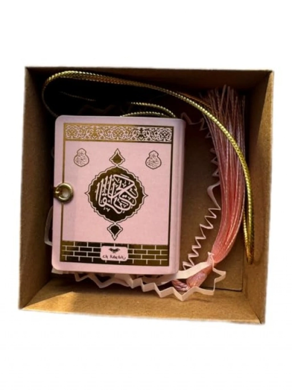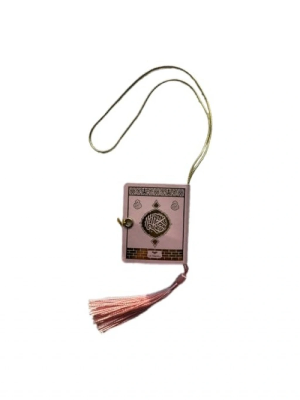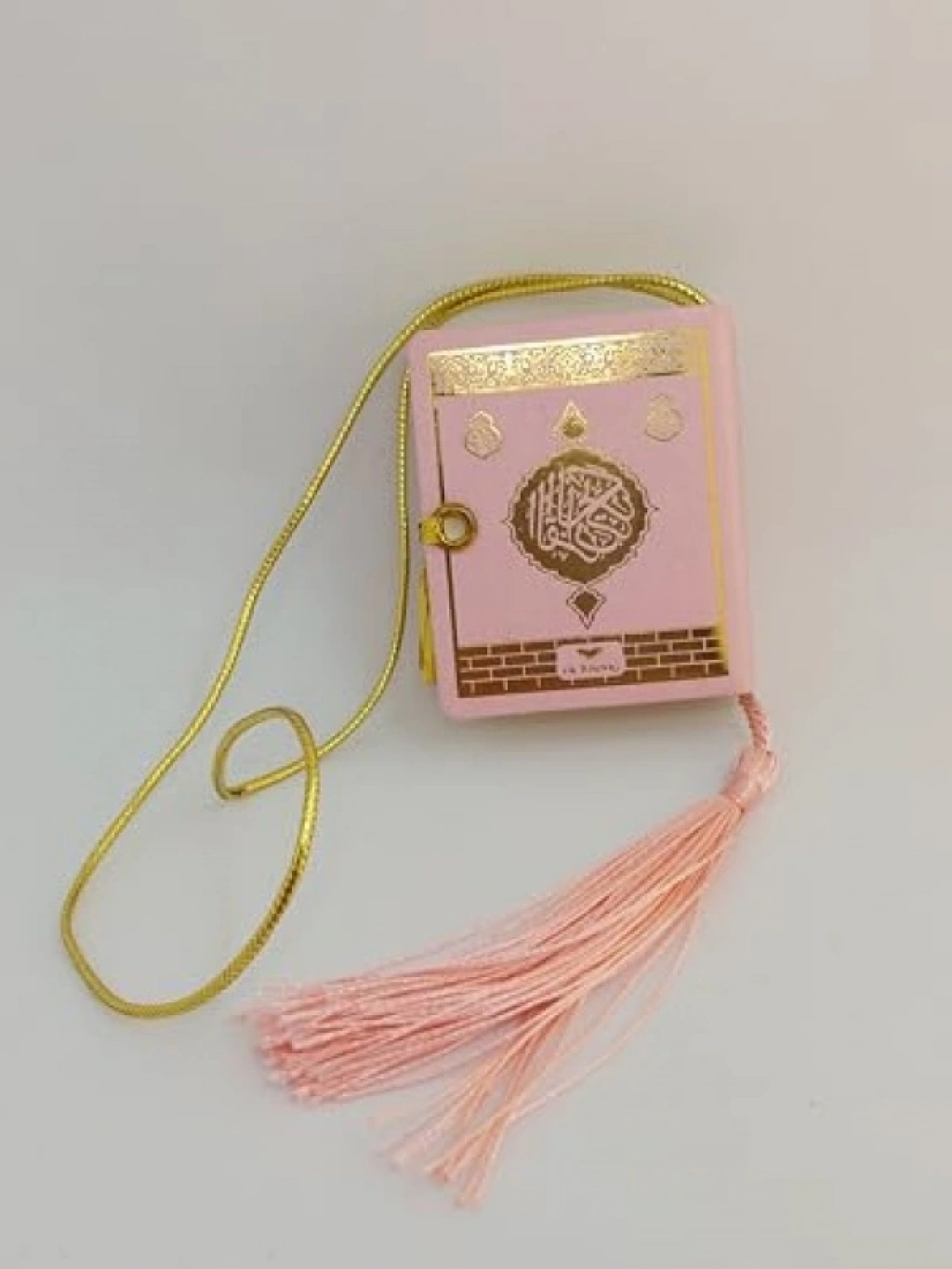 Bu pembe renkli mini Kuranı Kerim, araç içi kullanım için özel olarak tasarlanmıştır. Dikiz aynasına asılabilen bu ürün, sürüş esnasında manevi bir ortam yaratır. Küçük boyutu ile her yerde taşıması kolaydır. Araba içinde ruhsal rahatlık arayanlar için ideal bir seçimdir.