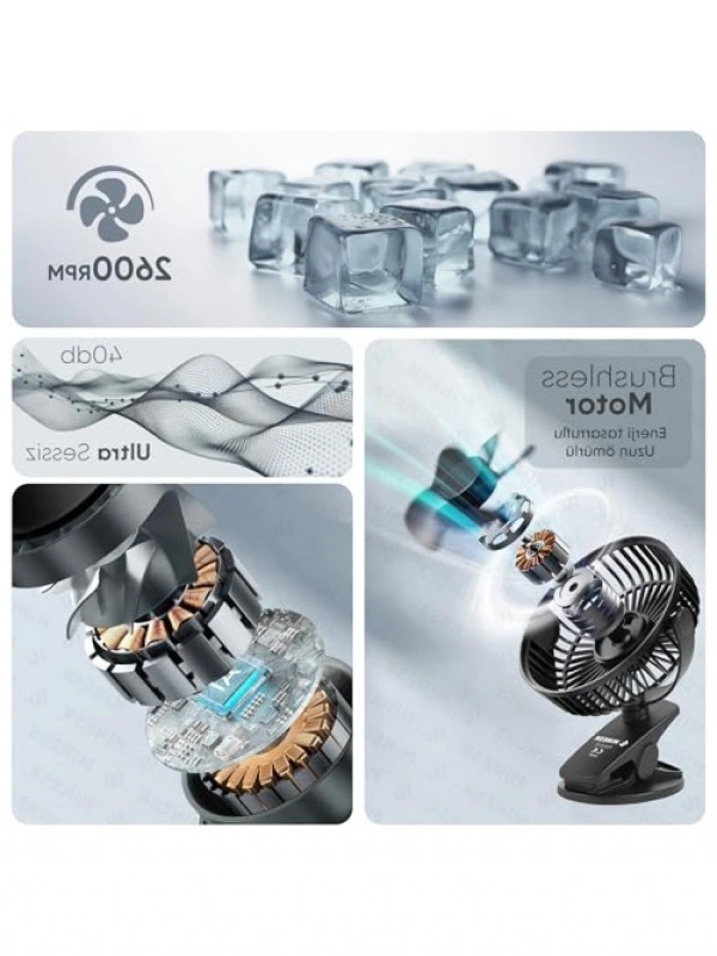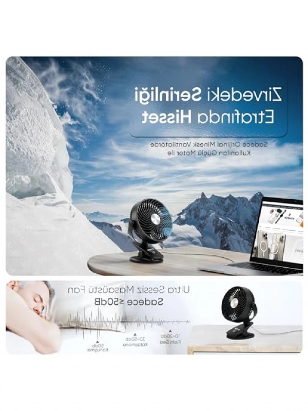 Bu mini vantilatör, ultra güçlü hava akımı ile ferah bir serinlik sunar. Küçük ve ergonomik tasarımı sayesinde dar alanlarda bile rahatlıkla kullanılabilir. Fırçasız motor teknolojisi ile sessiz çalışma sağlar. 360° dönebilir yapısı, hava akışını istediğiniz yöne yönlendirme imkanı sunar. USB ile kolayca bağlanabilen bu vantilatör, düşük enerji tüketimi ile dikkat çeker. Taşınabilir ve minimalist tasarımı sayesinde her yerde yanınızda taşıyabilirsiniz.