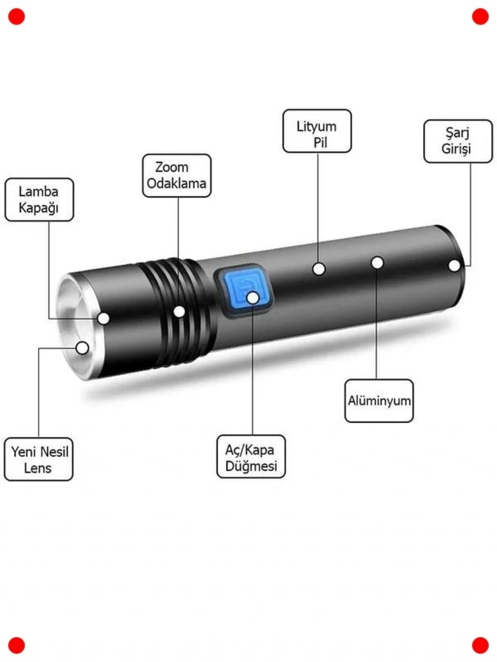 Karanlıkta yolunuzu aydınlatacak bu mini profesyonel LED el feneri ile hiçbir detay gözünüzden kaçmasın. Ultra güçlü T6 LED teknolojisi, geniş ve parlak bir ışık huzmesi sağlarken, ayarlanabilir zoom özelliği sayesinde ışığı odaklayabilir veya genişletebilirsiniz. Kompakt tasarımı, cebinizde veya çantanızda kolayca taşımanıza olanak tanır. Dayanıklı alüminyum gövdesi, suya ve darbelere karşı dirençlidir, bu da onu kamp, yürüyüş, balıkçılık veya acil durumlar için ideal kılar. Güvenilir ve güçlü bir ışık kaynağına ihtiyaç duyan herkes için mükemmel bir seçim.