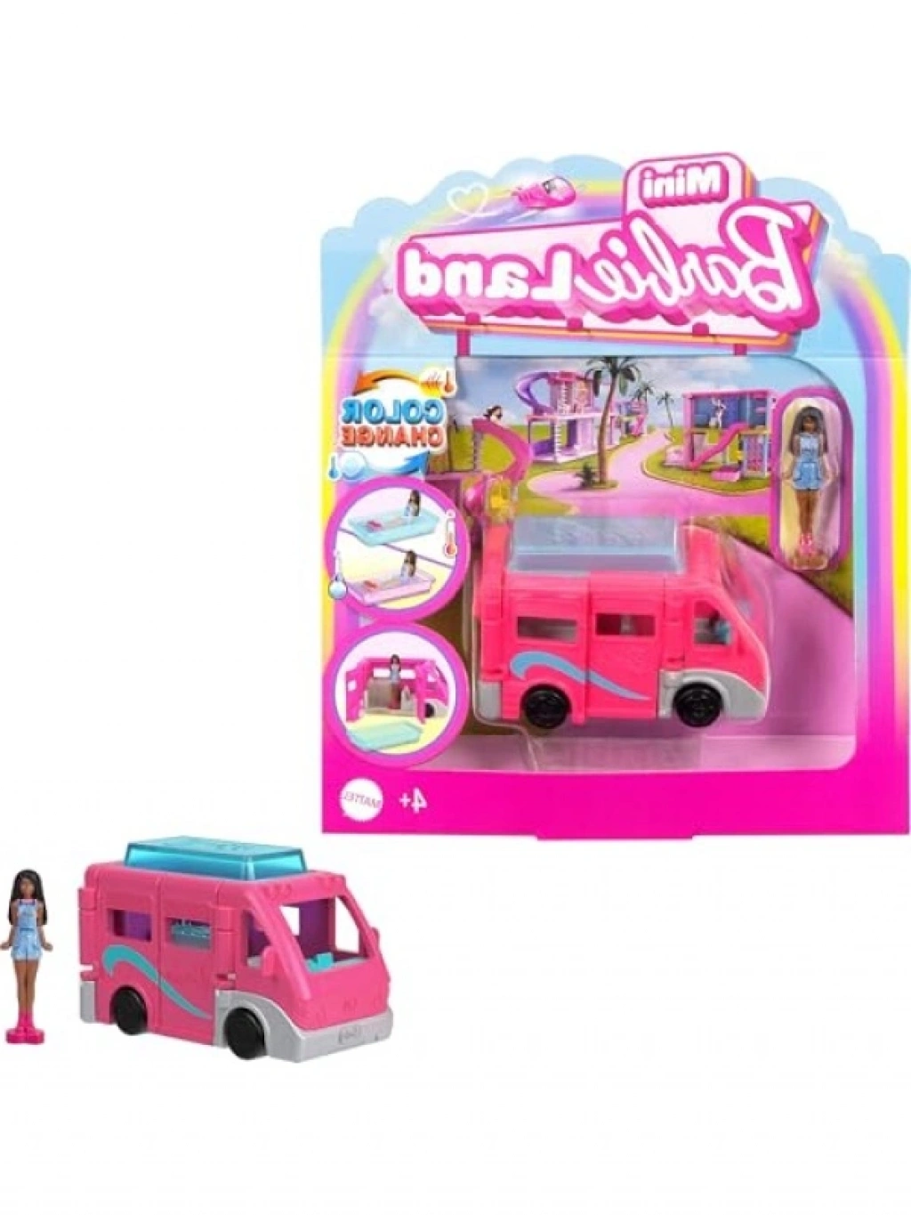 Mini BarbieLand dünyasına adım atmanızı sağlayacak bu set, 4 cm boyutundaki bebek ve renk değiştiren havuzlu karavanı içerir. Karavan, eğlenceli hikayeler yaratabilmeniz için detaylı bir şekilde tasarlanmıştır. Soğuk su kullanarak havuzun rengini değiştirebilir, ılık su ile eski haline döndürebilirsiniz. Karavanın kapakları açıldığında, içinde bir mutfak alanı da bulunmaktadır. Bu set, çocukların hayal gücünü geliştirirken eğlenceli oyun saatleri için idealdir.