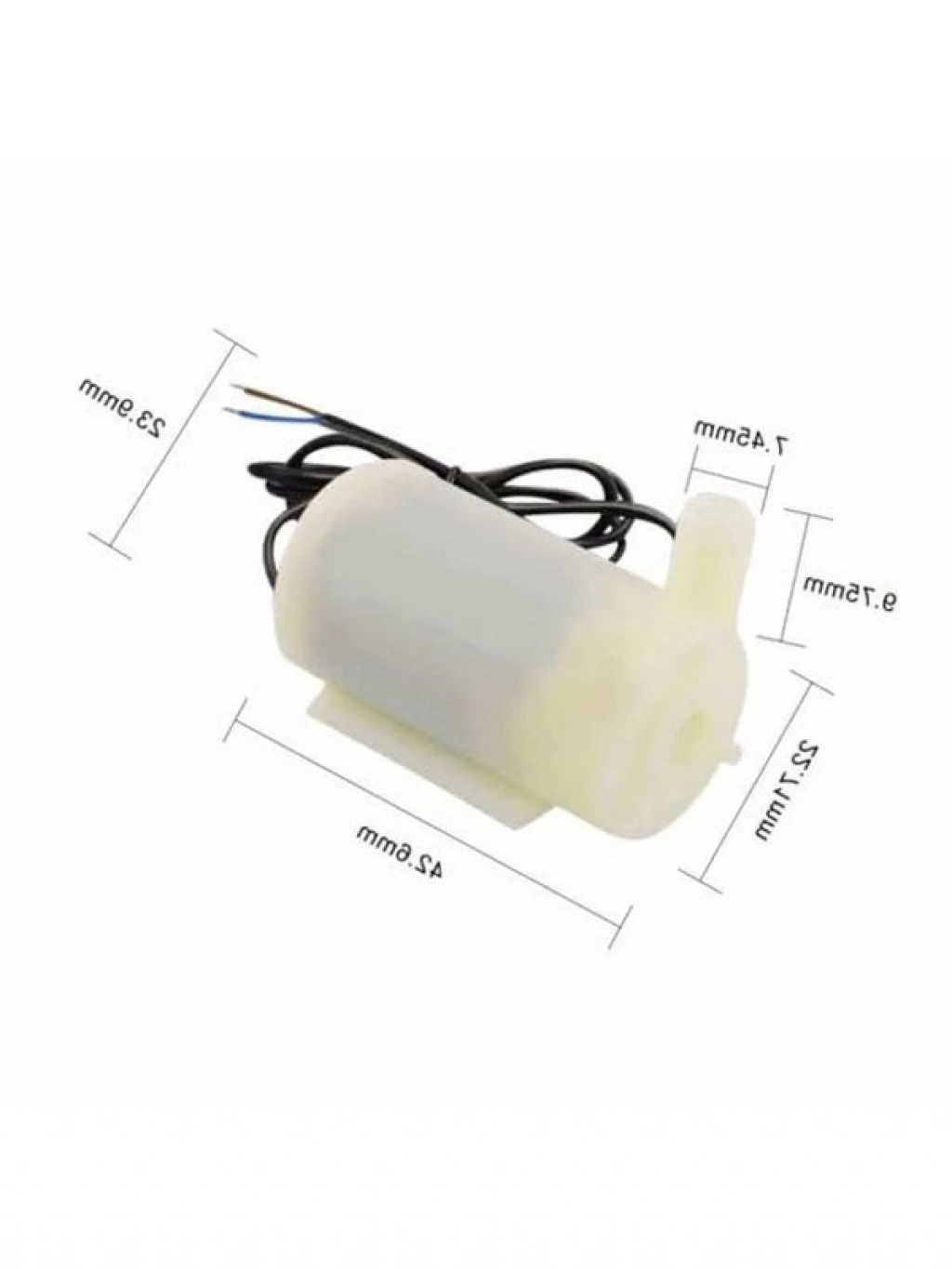 Mini yatay dalgıç su pompası, 120L/H akış hızı ve 2.5V-6V güç aralığı ile performans gösterir. Maksimum 110 cm kaldırma yüksekliği sunarak, su çıkış çapı 7.5 mm'dir. Yaklaşık 45 mm uzunluğunda ve 24 mm çapında olan bu pompa, 15-20 cm tel uzunluğu ile pratik bir kullanım imkanı sunar.