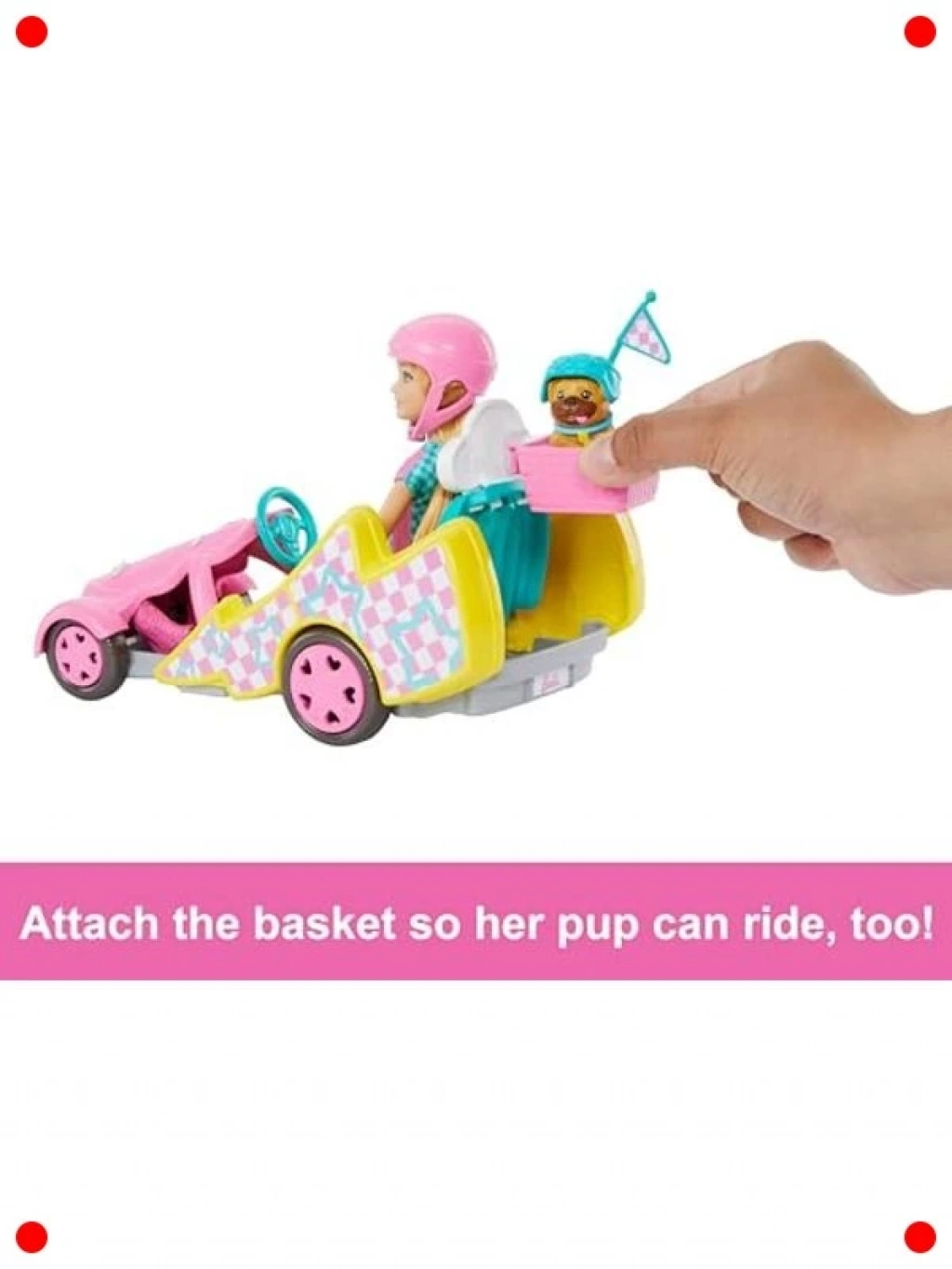 İki moda bebek figürü içeren bu go kart ve evcil hayvan oyun setiyle macera dolu bir sürüşe hazır olun! Set, dönen tekerleklere sahip dinamik bir go kart, sevimli bir köpek figürü, çeşitli aksesuarlar ve eğlenceli bir çıkartma sayfası dahil olmak üzere toplam 9 parça içerir. Çocuklar, bebekleri go kart'a bindirip yarışlar düzenleyebilir, evcil hayvanlarıyla gezintiye çıkabilir ve kendi yaratıcı hikayelerini oluşturabilirler. Bu set, arkadaşlık, macera ve hayal gücünü teşvik ederken, çocukların rol yapma ve sosyal becerilerini geliştirmelerine yardımcı olur. Saatlerce sürecek eğlenceli ve interaktif bir oyun deneyimi sunar.