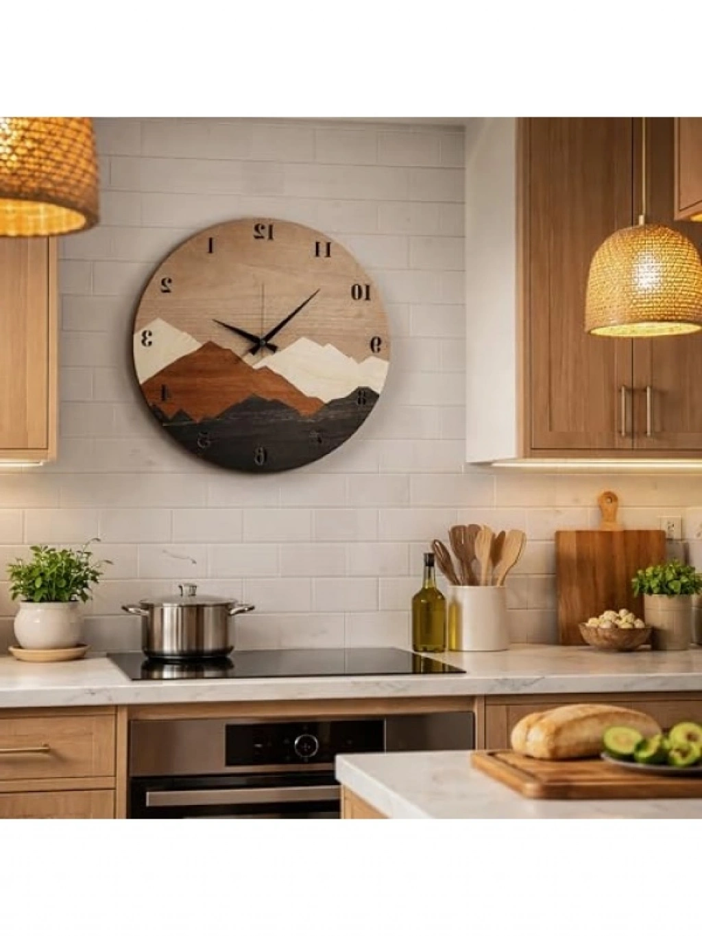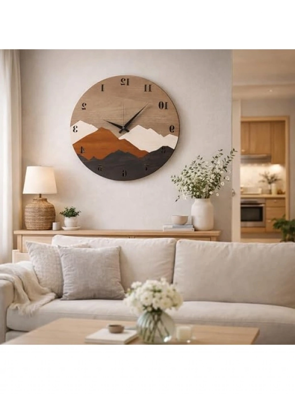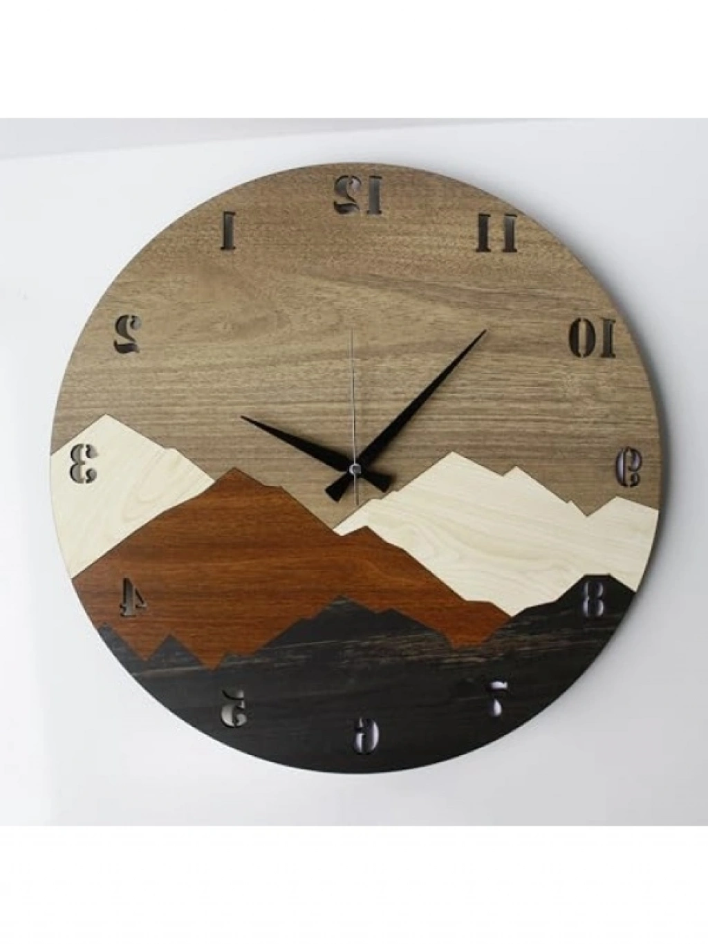 Bu modern rustik tasarıma sahip duvar saati, dağ motifleri ile süslenmiştir ve evinize veya ofisinize farklı bir hava katacaktır. 50 cm çapındaki bu saat, büyük ve kolay okunabilir rakamları sayesinde zaman takibini kolaylaştırır. Sağlam ahşap malzemeden üretilmiş olması, uzun yıllar dayanıklılığını korur. Kullanışlı yapısı ile hem dekoratif hem de işlevsel bir aksesuar olarak öne çıkar.
