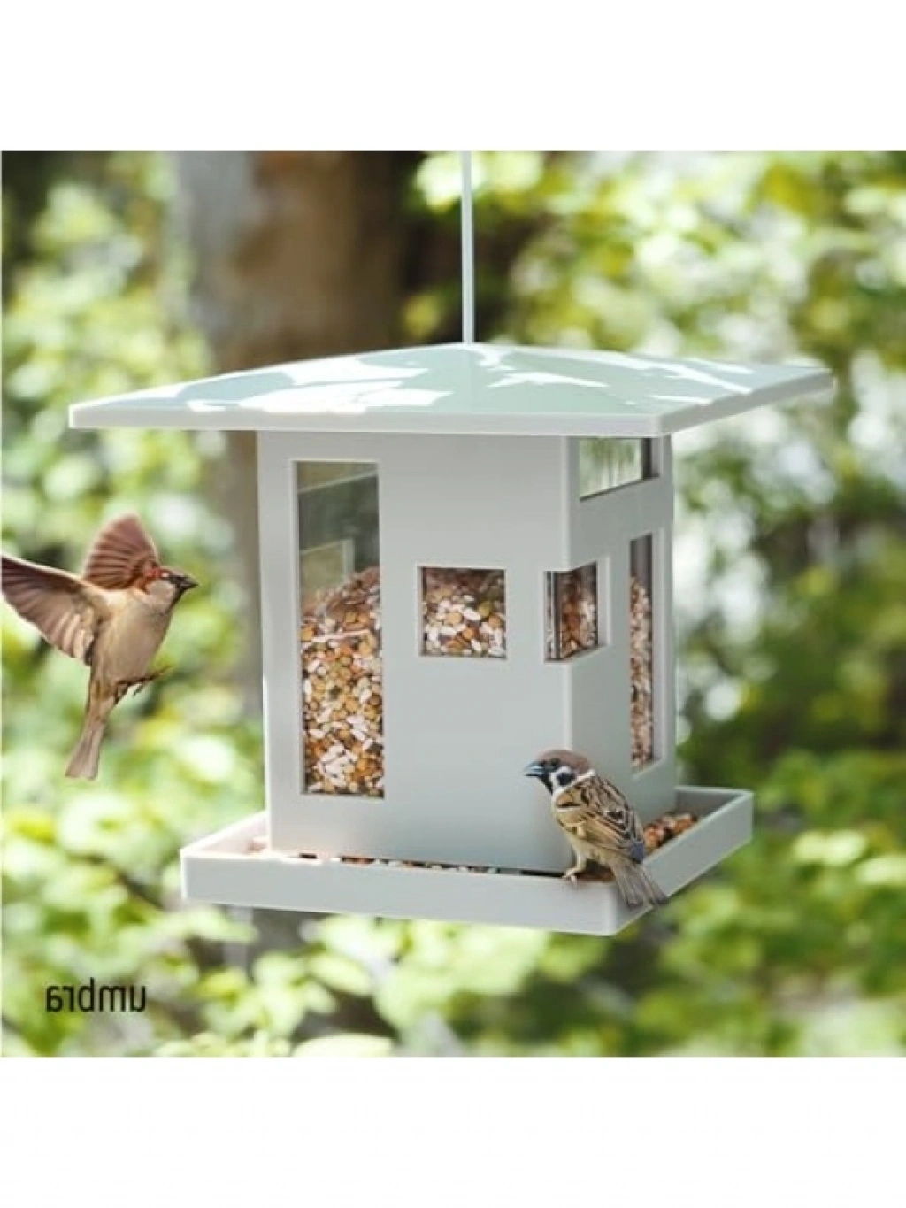 Bird Cafe kuş yemliği, modern ve mimari tasarımı ile dikkat çeker. Asimetrik pencereleri sayesinde yem seviyesini kolayca kontrol edebilir, kuşların rahatça beslenmesini sağlar. Entegre sarmal tepsi, kuşların üzerinde tüneyerek yem yemelerine yardımcı olur. Sağlam çelik halat ile kolayca asılabilir. Temizlenmesi kolay yapısı ile bakımını da kolaylaştırır.