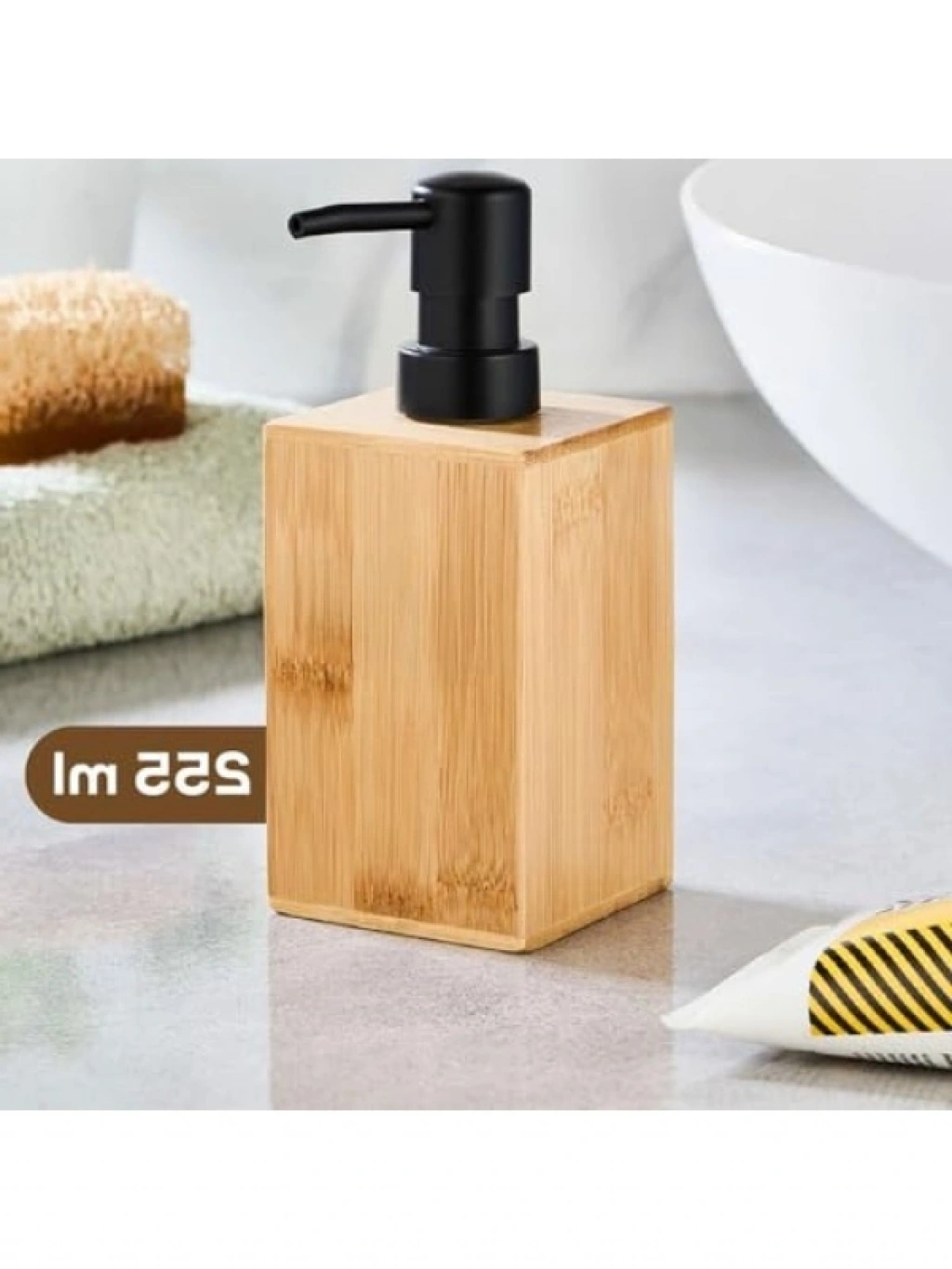Doğal bambu malzemeden üretilen bu sıvı sabunluk, banyonuza ve mutfağınıza modern bir dokunuş katıyor. 255ml kapasiteye sahip bu ürün, sıvı sabun, losyon veya şampuan gibi çeşitli sıvıları saklamak için idealdir. Minimalist tasarımı sayesinde her türlü dekorasyon stiline uyum sağlar. Kolay dolum için geniş ağzı ve akıcı pompa mekanizması ile pratik bir kullanım sunar.