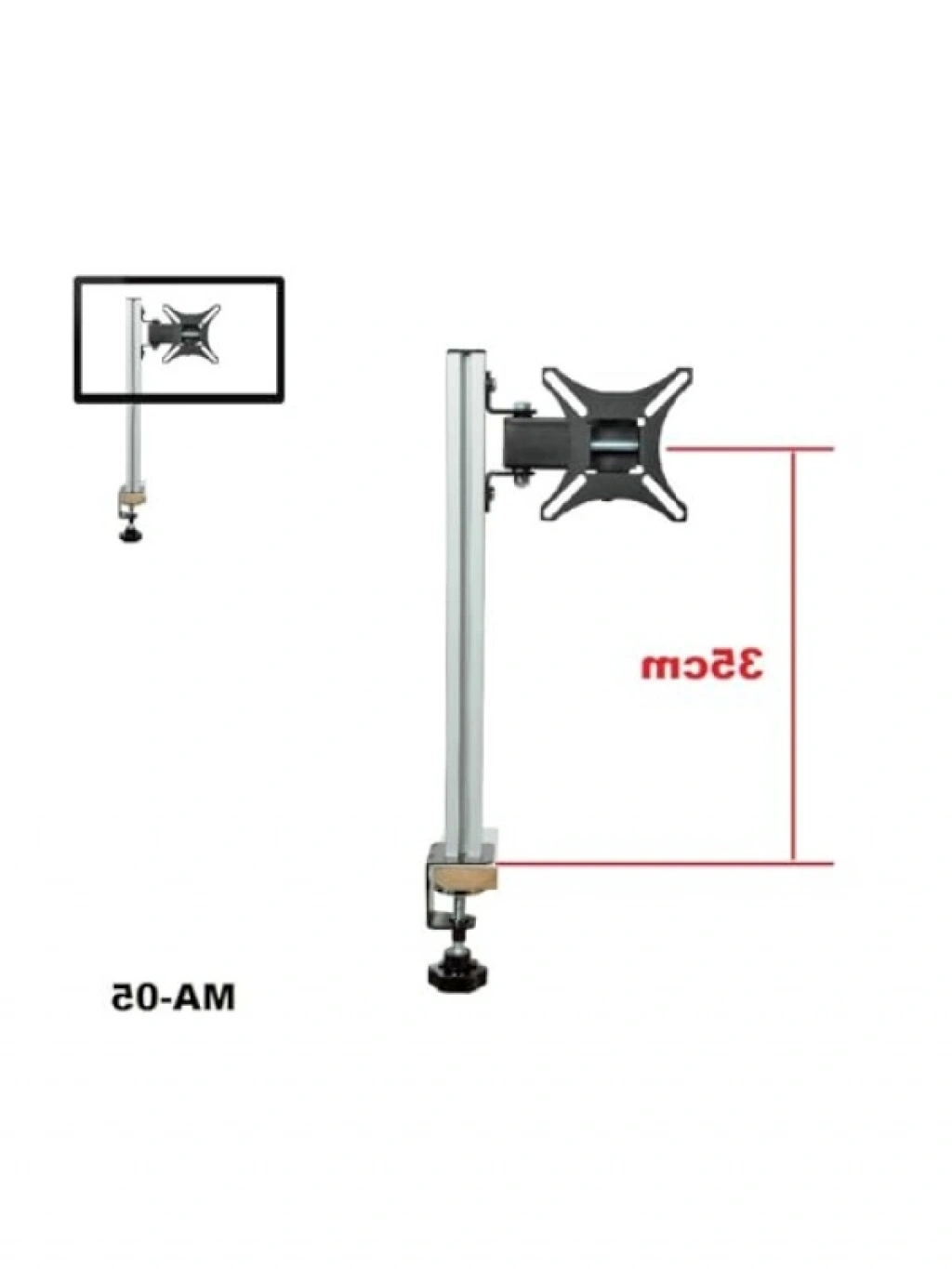 Bu monitör askı aparatı, 17" ile 27" boyutlarındaki ekranlar için tasarlanmıştır. Sağlam aluminyum profilden üretilmiş orta direk, monitörünüzü farklı yüksekliklere ayarlamanıza olanak tanır. ±180° dönebilme özelliği ile ekranınızı istediğiniz yöne rahatça çevirebilirsiniz. Aşağı yukarı ayar açısı ise ±15°'dir. Maksimum 7 kg taşıma kapasitesi ile güvenilir bir kullanım sunar. Monitör montaj deliği mesafelerini kontrol ederek uyum sağladığından emin olabilirsiniz.