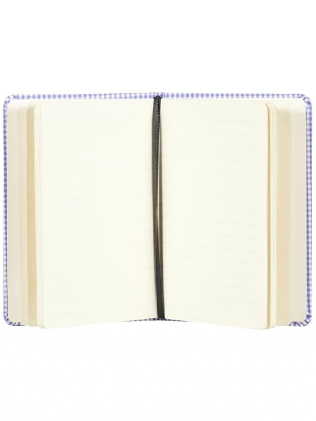Mor çizgili A6 boyutundaki not defteri, sert tekstil kapak ile tasarlanmıştır. 100 yaprak kağıt rengi ivory olan bu defter, pratik kullanımıyla dikkat çeker. Küçük boyutu sayesinde çantada kolayca taşınabilir.