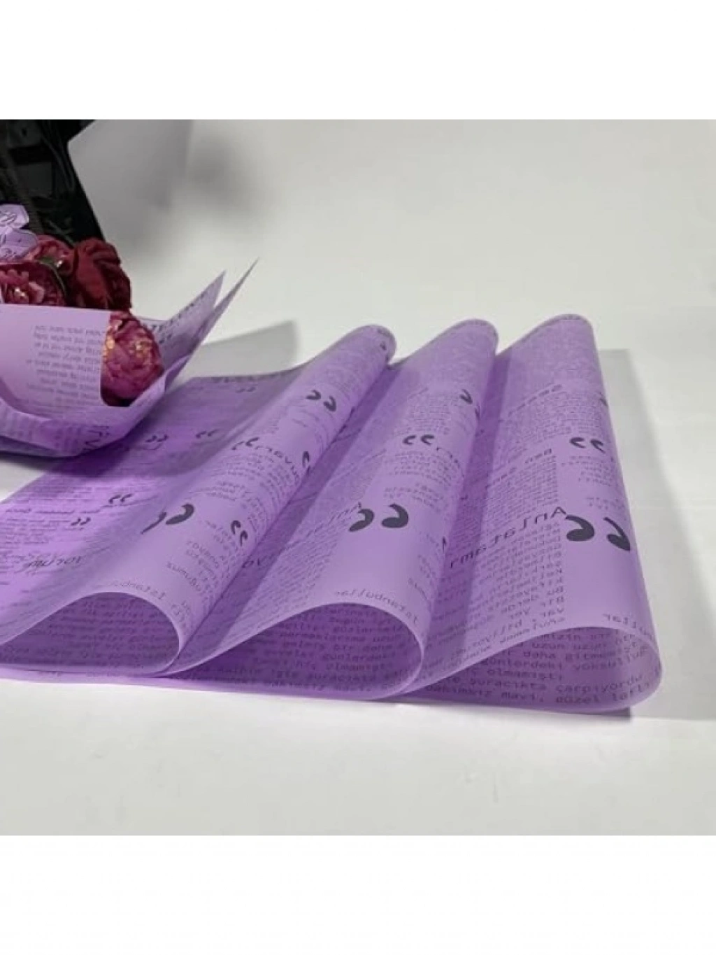 Bu çiçek buket kağıdı, mor renkli ve mat opp malzemeden üretilmiştir. 55x55 cm ölçülerinde toplamda 10 sayfa içermektedir. Özel tasarımı ile çiçek düzenlemeleri veya el yapımı projeler için ideal bir seçenek sunar. Yüksek kaliteli kağıt, şıklığı ve dayanıklılığıyla göz doldurur. Yaratıcılığınızı serbest bırakmak ve özel anlarınızı güzelleştirmek için harika bir materyaldir.