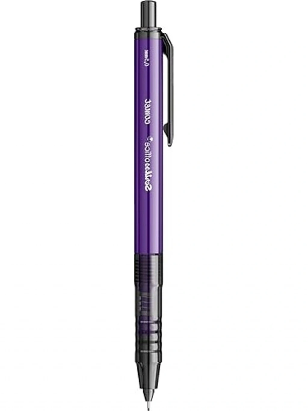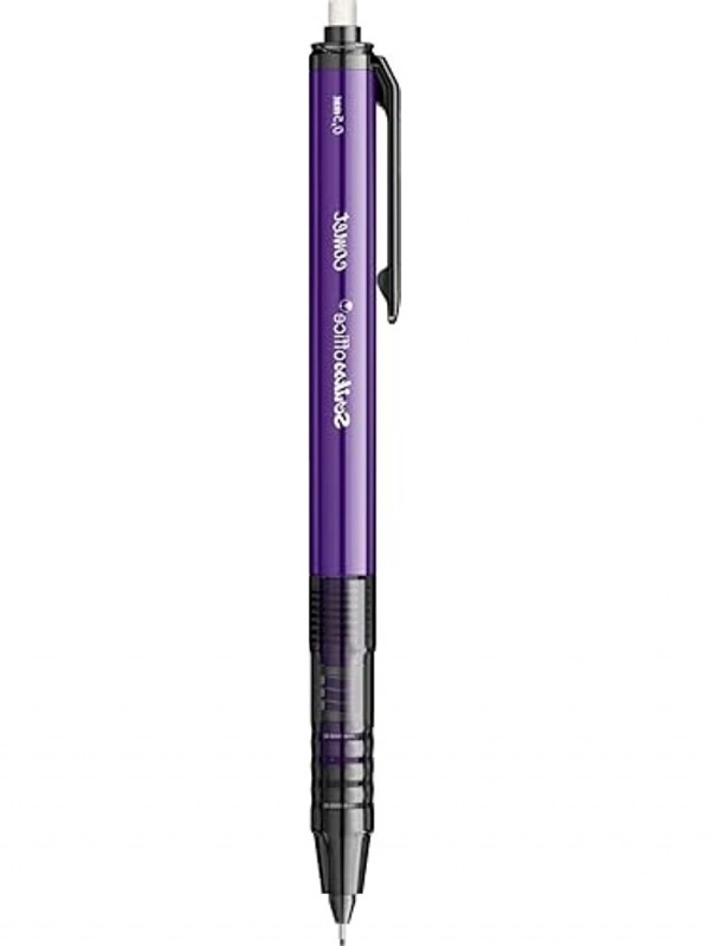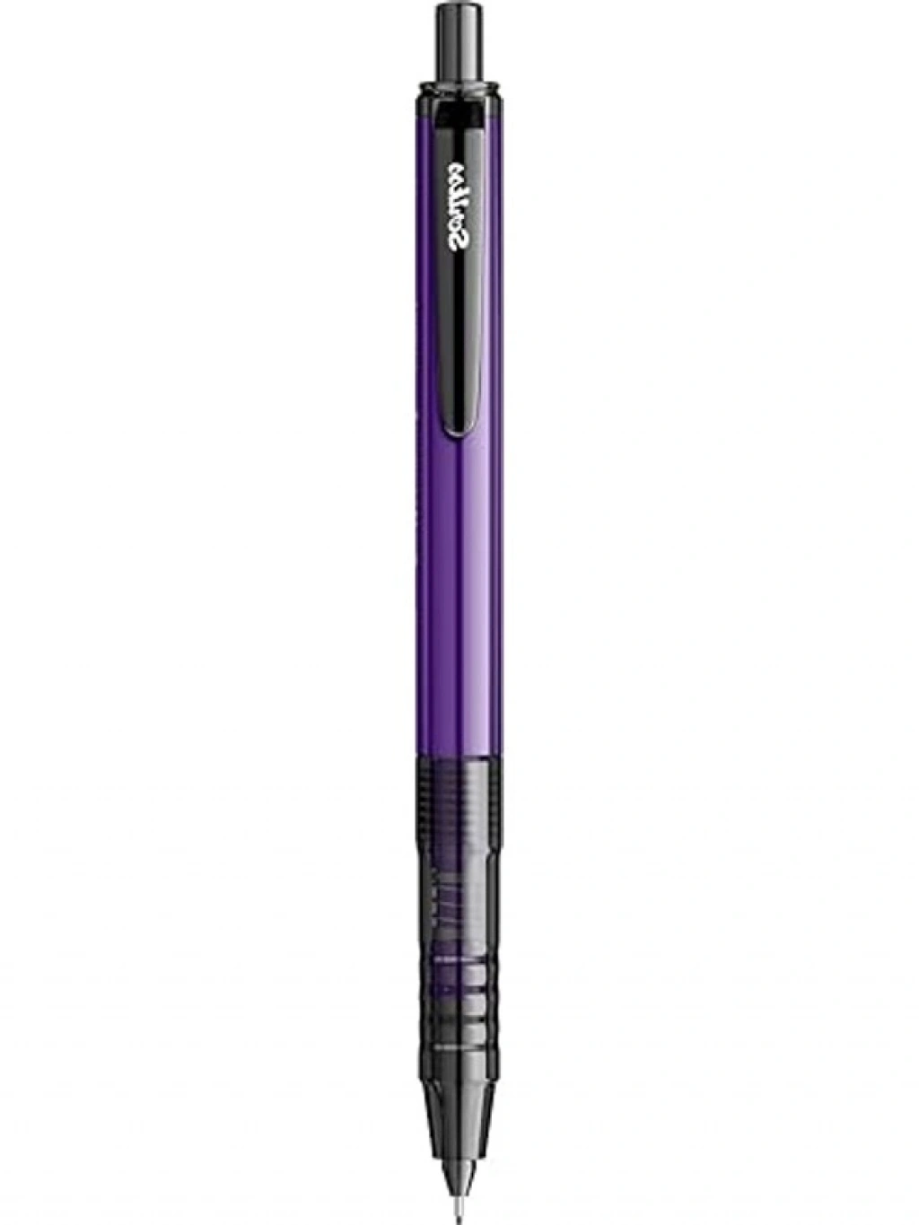 Mor renkli 0,5 mm kalınlığındaki versatil kalem, ergonomik tasarımı ve hafif plastik gövdesi ile rahat bir yazım deneyimi sunar. Üst kısmında bulunan silgi hemen erişilebilirken, baskı mekanizması ile kolayca kullanılabilir. Şeffaf grip yapısı, kullanımı konforlu hale getirir.