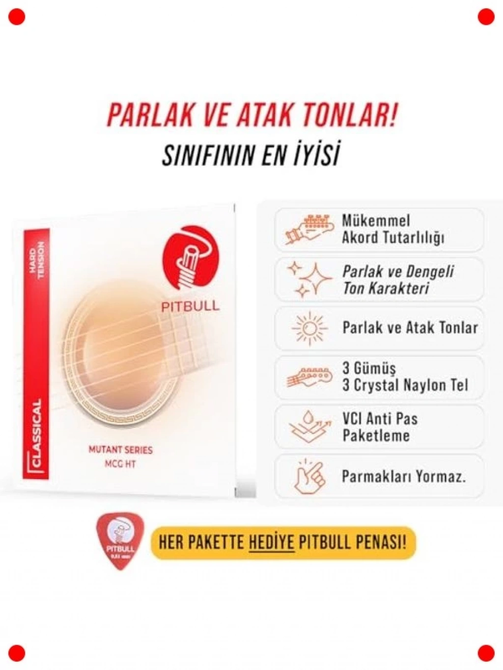 Klasik gitarınız için üstün ton ve uzun ömürlülük arıyorsanız, bu Mutant Seri kaplanmış telleri tercih edin. Sert tansiyon yapısı, güçlü bir ses projeksiyonu ve net bir ton rezonansı sunarken, daha dinamik bir çalım deneyimi sağlar. Özel kaplama teknolojisi sayesinde teller, nem, ter ve korozyon gibi dış etkenlere karşı daha dirençlidir, bu da tel ömrünü önemli ölçüde uzatır. Bu sayede, tellerinizi daha az sıklıkta değiştirerek tutarlı bir ton kalitesinin keyfini çıkarabilirsiniz. Hem pratiklerinizde hem de sahne performanslarınızda güvenebileceğiniz bu teller, klasik gitarınızın potansiyelini en üst düzeye çıkarır ve her notanın berraklığını vurgular.