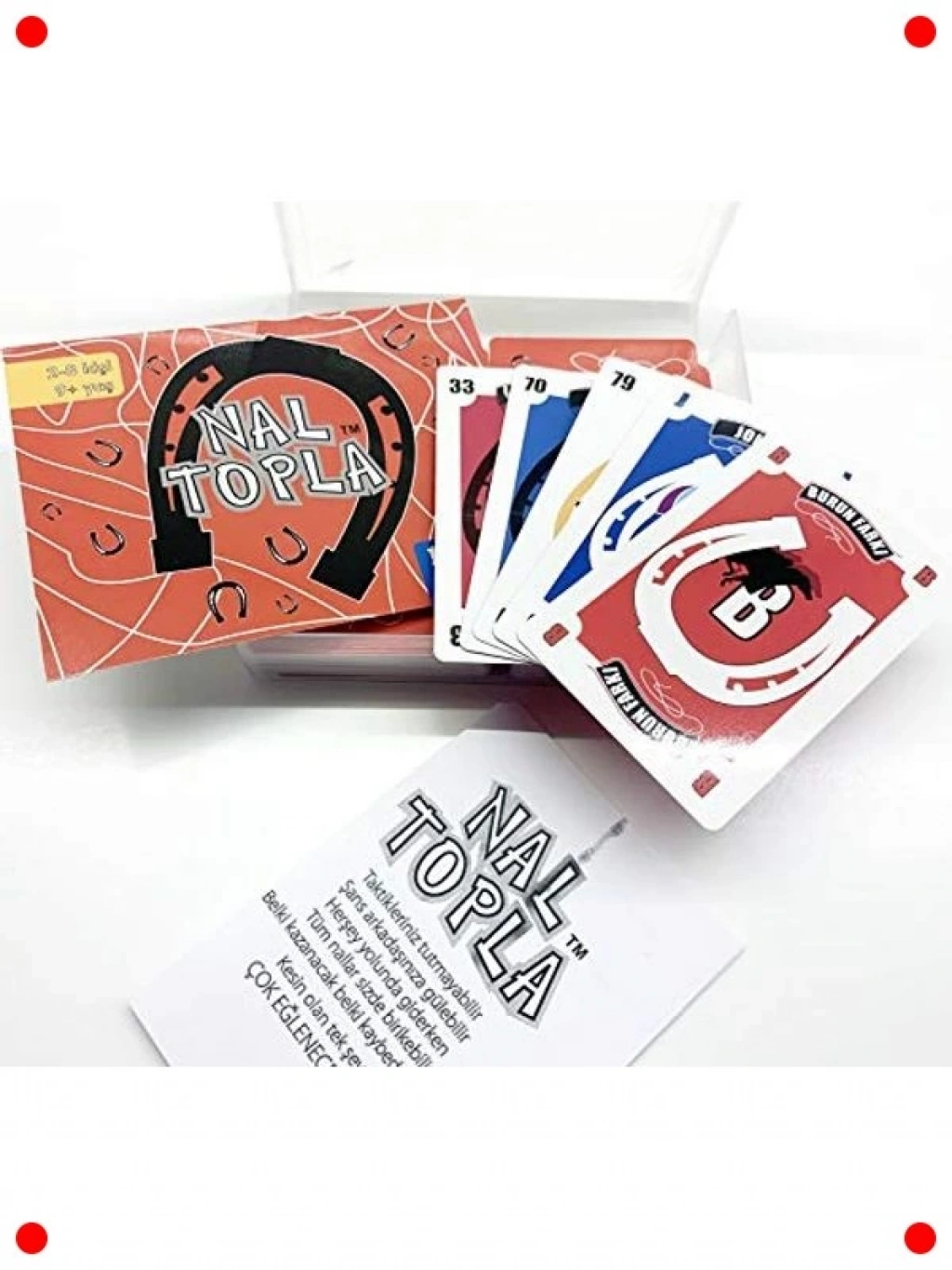 "Nal Topla" ile tüm aile bir araya gelin ve kahkaha dolu anlar yaşayın! Bu hızlı ve eğlenceli kart oyunu, kolayca öğrenilebilen kuralları sayesinde her yaş grubundan oyuncuya hitap eder. Oyuncular, stratejik hamleler yaparak en çok nalı toplamaya çalışırken, aynı zamanda dikkat ve hızlı düşünme becerilerini geliştirirler. Kompakt boyutu sayesinde tatillerde, pikniklerde veya evde geçirilen akşamlar için idealdir. Aile üyeleri arasındaki iletişimi güçlendirir ve tatlı bir rekabet ortamı sunar. Kutunun içinde yer alan dayanıklı kartlar, uzun süreli oyun keyfi için tasarlanmıştır. "Nal Topla" ile unutulmaz aile anıları biriktirin ve birlikte eğlencenin tadını çıkarın.