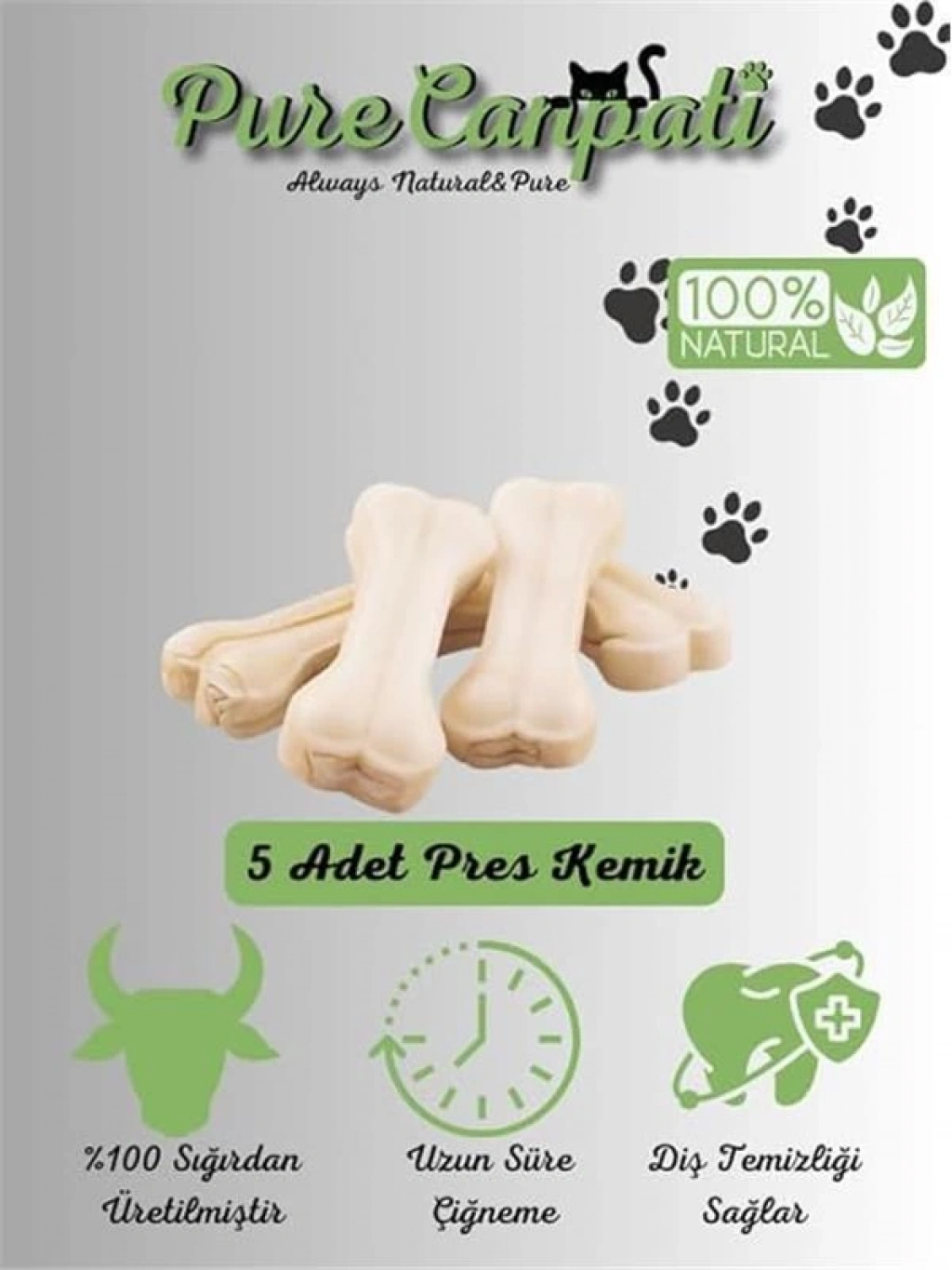 Naturel Beyaz Pres Köpek Çiğneme Kemiği 5'li 7,5cm (7,5 Cm, Tatlandırıcısız)