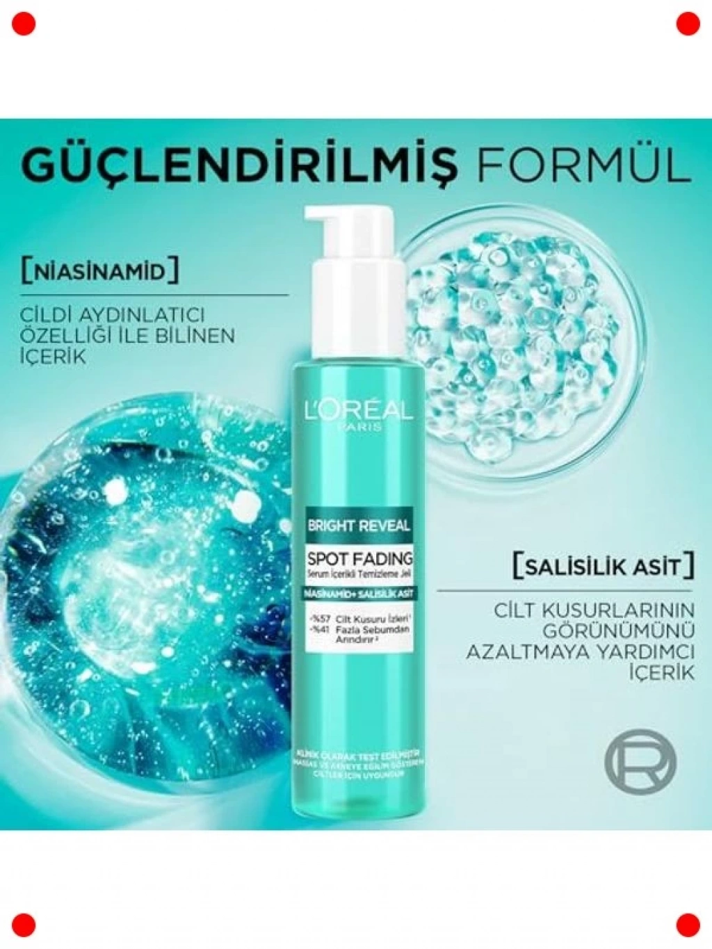 Cilt kusuru izleriyle savaşan, serum içerikli bu temizleme jeli ile cildinizi derinlemesine arındırın. Niasinamid ve salisilik asit içeren özel formülü, gözenekleri temizlemeye, cilt tonunu eşitlemeye ve cilt kusuru izlerinin görünümünü azaltmaya yardımcı olur. Cildi kurutmadan nazikçe temizler, ferah ve pürüzsüz bir his bırakır. Özellikle yağlı ve akneye eğilimli ciltler için idealdir, ancak tüm cilt tipleri tarafından kullanılabilir. Düzenli kullanımda cildinizin daha aydınlık, berrak ve sağlıklı görünmesine katkıda bulunur. Günlük cilt bakım rutininizin vazgeçilmez bir parçası olacak bu jelle, cildinizdeki değişimi fark edin.