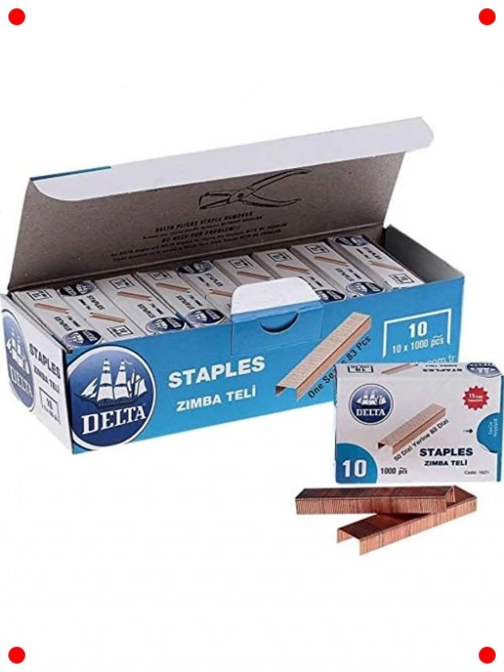 Ofis ve okul ihtiyaçlarınız için vazgeçilmez olan bu 1000 adetlik No:10 zımba teli paketi ile belgelerinizi kolayca bir araya getirin. Standart No:10 zımba makineleriyle tam uyumlu olacak şekilde tasarlanmıştır. Yüksek kaliteli metalden üretilen bu teller, kağıtlarınızı güvenli bir şekilde zımbalar ve yırtılmayı önler. Keskin uçları sayesinde kağıtlara rahatça nüfuz eder ve pürüzsüz bir zımbalama deneyimi sunar. Büyük miktardaki bu paket, sık zımbalama yapanlar için ekonomik ve pratik bir çözümdür. Raporlar, sunumlar, ödevler veya günlük evrak düzenlemeleri için idealdir. Bu zımba telleri, uzun süreli kullanım için dayanıklılık ve güvenilirlik sunar.