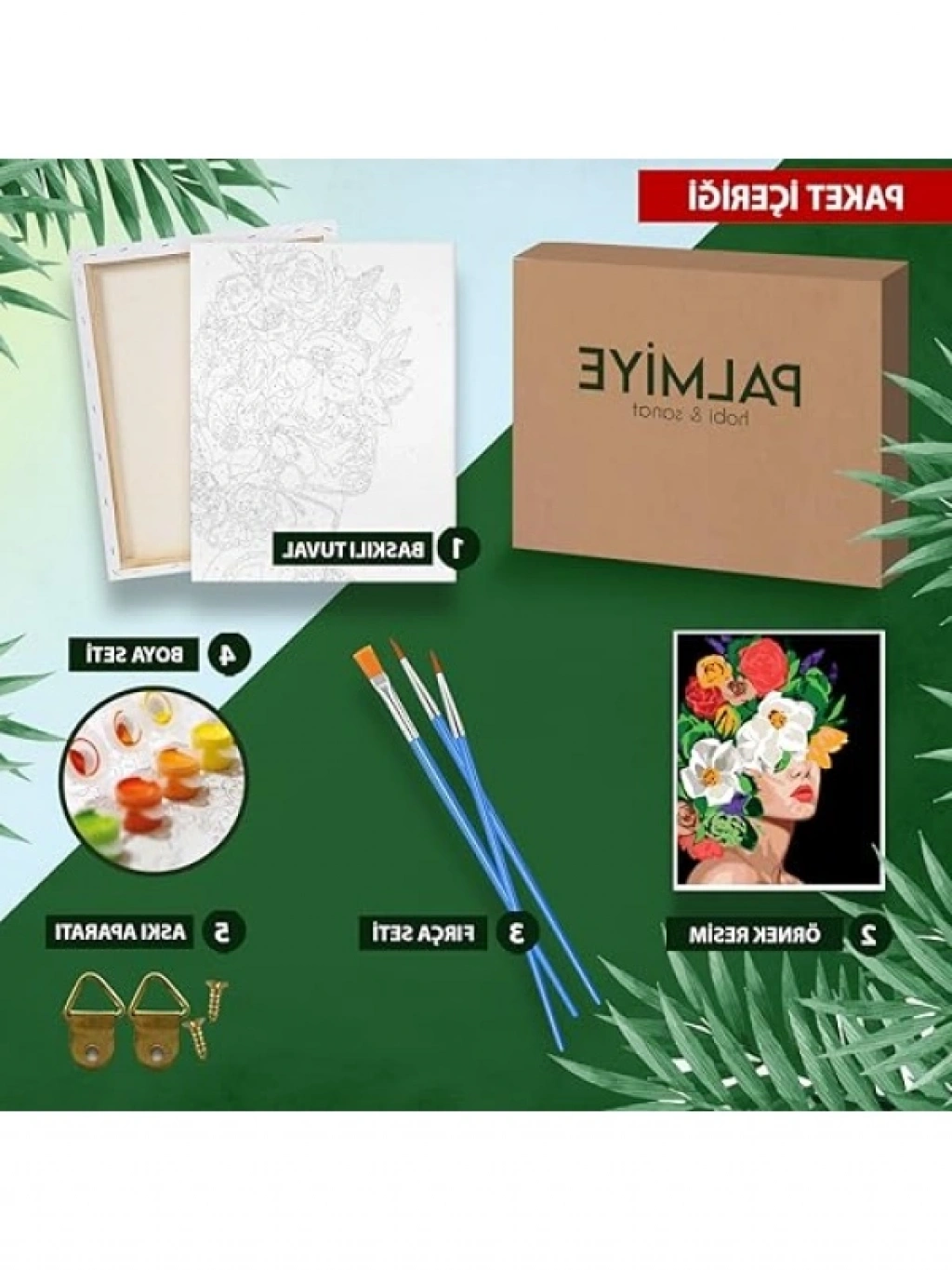 Bu boyama seti, 40x50 cm ölçülerinde kasnaklı tuval ile birlikte gelir. Set içerisinde tüm boyalar ve 3 adet fırça bulunmaktadır. Numaralandırılmış tuval, kullanıcıların kolayca resim yapmasını sağlar. Yaratıcı bir hobi arayanlar için mükemmel bir hediye seçeneği sunar.