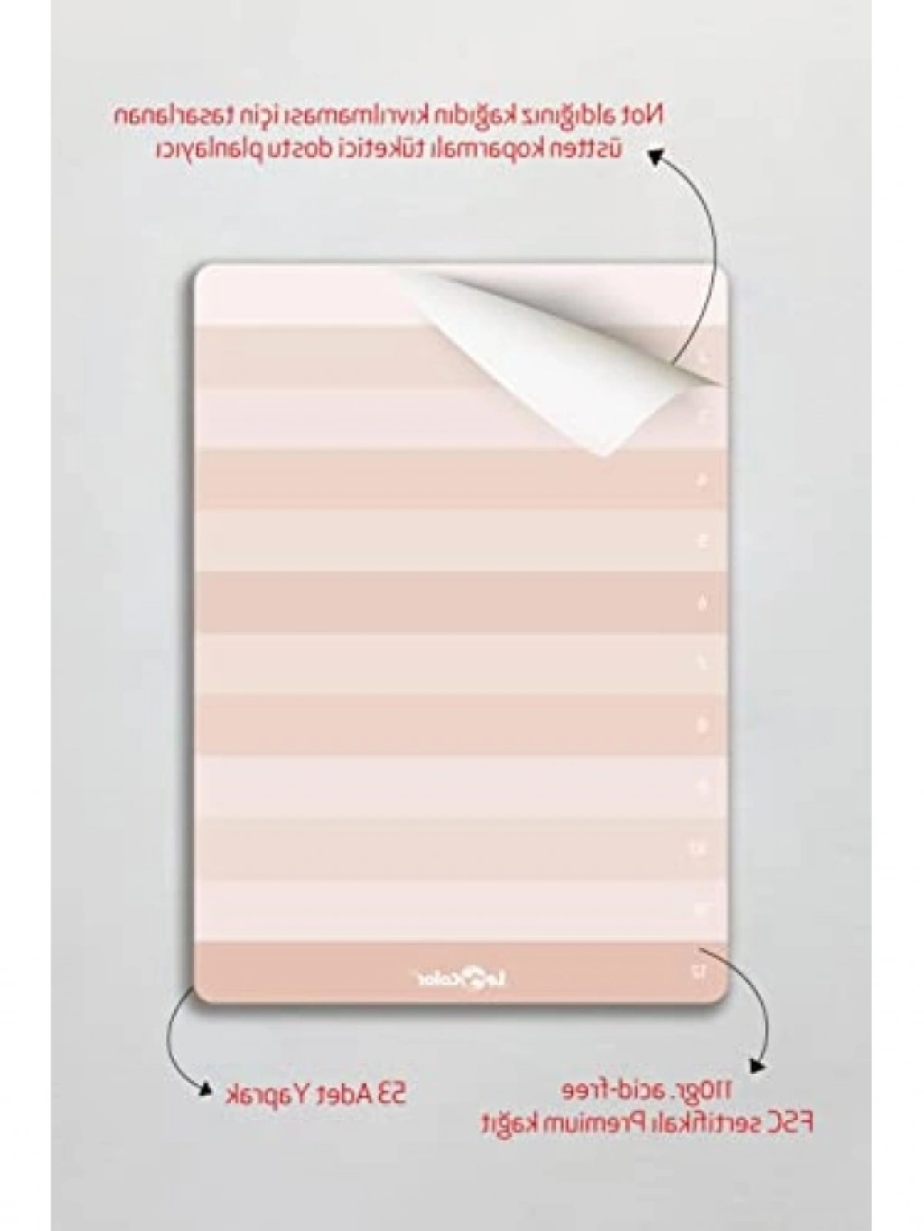 Kullanıcıların günlük planlarını düzenlemelerine yardımcı olan bu numaralı planlayıcı blok, sade ve doğal bir tasarıma sahiptir. Planlama yaparken ihtiyaç duyacağınız tüm alanları sağlayarak, hedeflerinizi belirlemenize yardımcı olur. Kaliteli kağıdı sayesinde yazım akıcılığı sunar. Hem profesyoneller hem de öğrenciler için ideal olan bu planlayıcı, günlük yaşamınızı organize etmek için mükemmel bir araçtır.