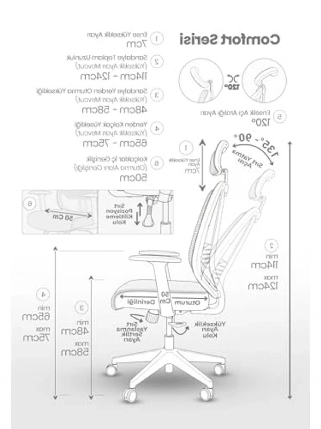 Konforlu yapı ve modern tasarımıyla öne çıkan bu ofis koltuğu, çalışma alanınıza şıklık katarken uzun saatler süren oturumlarda destek sunar. Ergonomik şekli, sırtınızı desteklerken, ayarlanabilir detayları ile kişisel konfor seviyenizi artırır. Nefes alabilen sırt tasarımı ve sağlam gövdesi, her an kaliteli bir oturum deneyimi yaşatır. Hem ev hem de profesyonel ofislerde kullanıma uygun, işlevselliği ve estetiği bir araya getiren bir üründür.