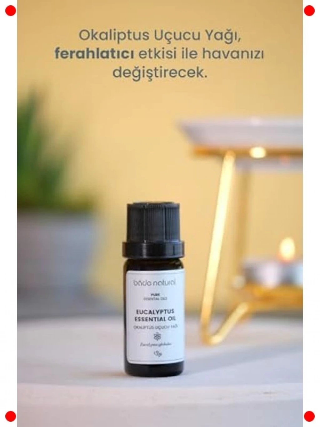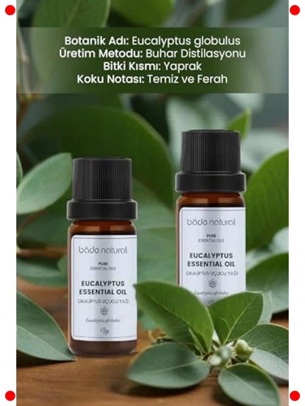 Doğanın ferahlatıcı gücünü evinize getiren bu %100 saf okaliptüs uçucu yağı, 10 ml'lik şişesinde yoğun bir deneyim sunar. Keskin ve temizleyici kokusuyla hem zihninizi canlandırır hem de nefes almayı kolaylaştırır. Difüzörde kullanıldığında odanızın havasını tazelemeye yardımcı olur veya buhar banyolarında rahatlatıcı bir etki yaratır. Masaj yağlarınıza birkaç damla ekleyerek kaslarınızı rahatlatabilir veya kişisel bakım rutininize ekleyerek ferahlık hissi yaşayabilirsiniz. Doğal ve etkili bir arınma deneyimi için idealdir.