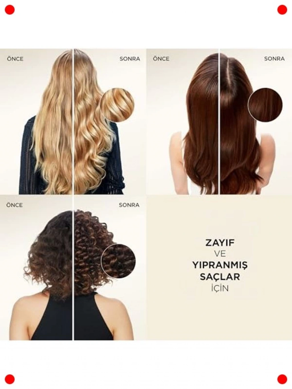 Yıpranmış ve zarar görmüş saçlarınızı onarmak ve gelecekteki hasarlara karşı korumak için tasarlanmış bu bakım şampuanı, saçlarınıza güç ve parlaklık kazandırır. Saç tellerinin derinliklerine nüfuz ederek içten dışa onarım sağlar, kırılmaları ve kopmaları azaltır. Saçlarınızı dış etkenlere karşı koruyucu bir kalkanla sarar, böylece daha dirençli ve sağlıklı olurlar. Düzenli kullanımda saçlarınız daha pürüzsüz, yumuşak ve yönetilebilir hale gelir. 325 ml'lik boyutuyla günlük saç bakım rutininizin vazgeçilmez bir parçası olacak.