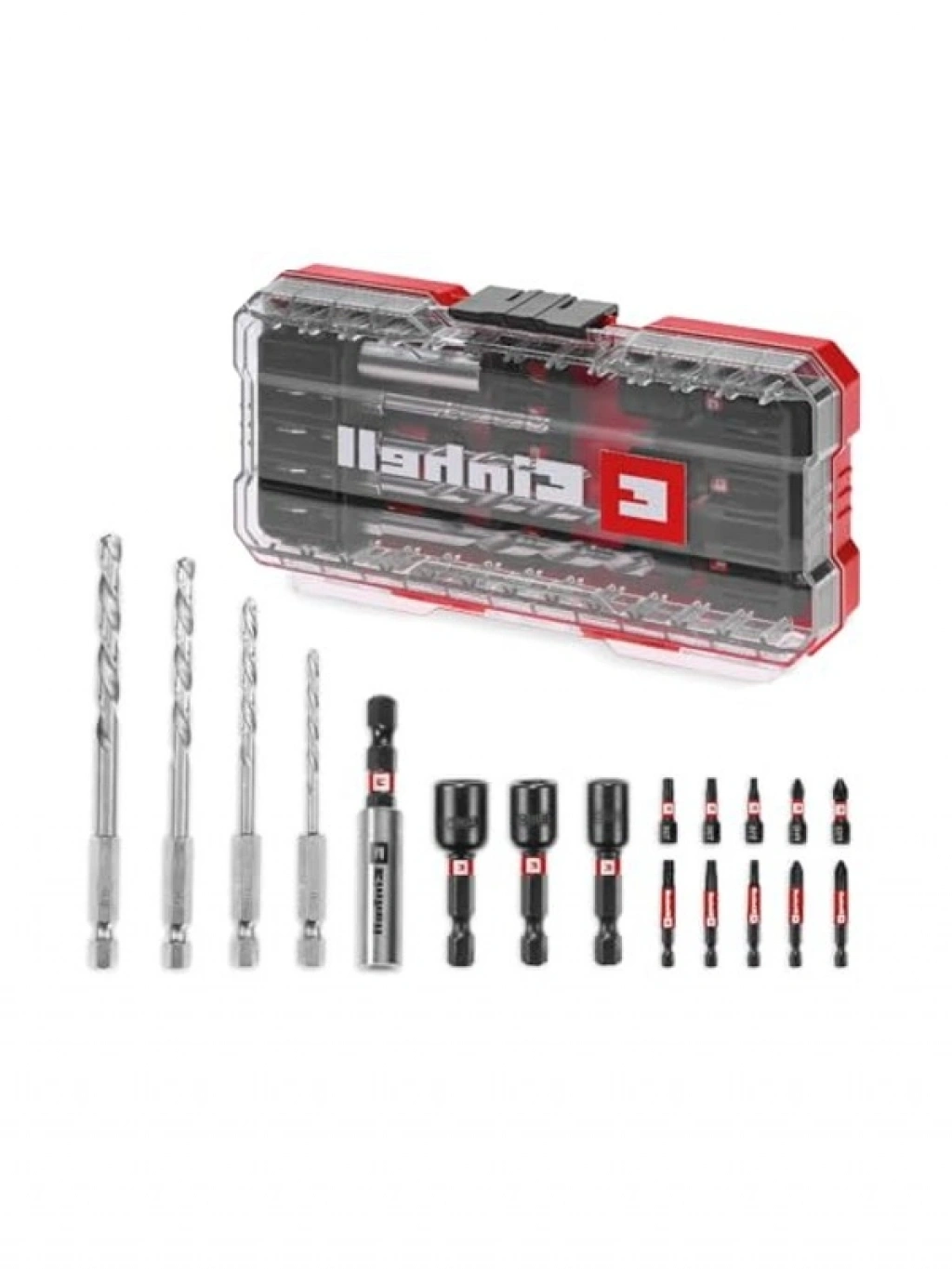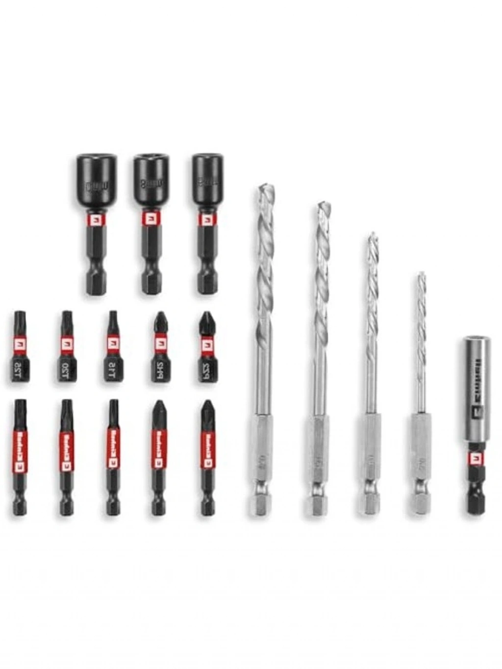 Bu 18 parçalık darbeye dayanıklı aksesuar seti, çeşitli bitler ve lokma adaptörleriyle zorlu uygulamalar için idealdir. Manganez-fosfat kaplamalı S2 çelikten üretilen 25 mm ve 50 mm bitler, dayanıklılıkları ile dikkat çekerken, paslanmaz çelik manşonlu bit tutucusu ile güvenli ve hassas yönlendirme sağlar.