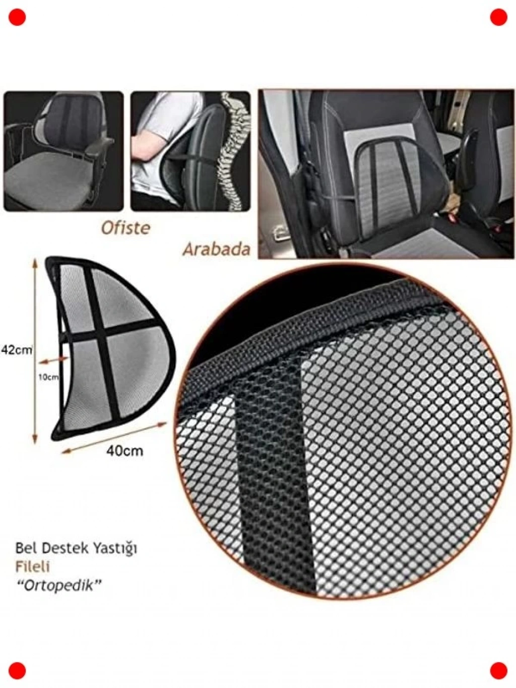 Uzun süreli oturmalarda bel ve sırt sağlığınızı korumak için tasarlanmış bu ortopedik destek minderi ile konforu yeniden keşfedin. Ergonomik yapısı, omurganızın doğal eğrisini destekleyerek duruş bozukluklarını engellemeye yardımcı olur ve bel ağrılarını azaltır. Nefes alabilen file kumaşı sayesinde terlemeyi önler ve özellikle yaz aylarında bile serin ve rahat bir kullanım sunar. Ayarlanabilir lastik bantları, minderini araba koltuklarına, ofis sandalyelerine veya evdeki herhangi bir koltuğa kolayca sabitlemenizi sağlar. Siyah renkli şık tasarımı, her ortama uyum sağlar. Sağlıklı ve konforlu bir oturma deneyimi için idealdir. Konforunuz için ergonomik tasarımı tercih edin.