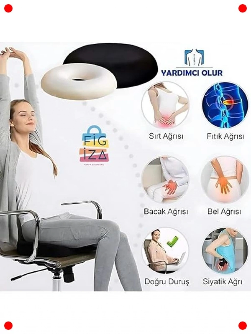 Uzun süreli oturmanın neden olduğu rahatsızlıkları hafifletmek için özel olarak tasarlanmış bu ortopedik oturma simidi minderi, visco elastik köpük yapısıyla vücudunuzun şeklini alarak maksimum konfor sağlar. Özellikle basur, kuyruk sokumu ağrısı veya ameliyat sonrası iyileşme dönemlerinde hassas bölgelere uygulanan baskıyı azaltır. Kan dolaşımını destekleyerek uyuşmayı ve ağrıyı önlemeye yardımcı olur. Ofis koltuğu, araç koltuğu veya evdeki sandalyelerde rahatlıkla kullanılabilir. Taşınabilir ve hafif yapısıyla her yere götürebileceğiniz bu minderle konforunuzdan ödün vermeyin.