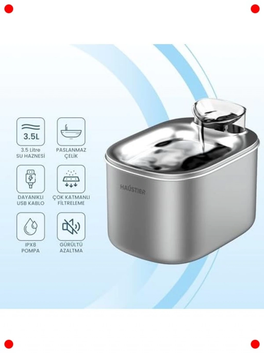 Evcil dostlarınızın her zaman taze ve temiz suya erişebilmesini sağlayan bu otomatik su sebili, 3.5 litrelik geniş kapasitesiyle sık sık doldurma ihtiyacını ortadan kaldırır. BPA içermeyen metal tasarımı, sağlığı destekler ve dayanıklılık sunar. Ultra sessiz pompa teknolojisi sayesinde evinizde huzurlu bir ortam korunur. Sürekli sirkülasyon, suyu havalandırır ve evcil hayvanınızı daha fazla su içmeye teşvik eder, böylece böbrek sağlığını destekler. Şık metal görünümüyle evinize modern bir dokunuş katar ve kolayca temizlenebilir yapısıyla hijyen sağlar.