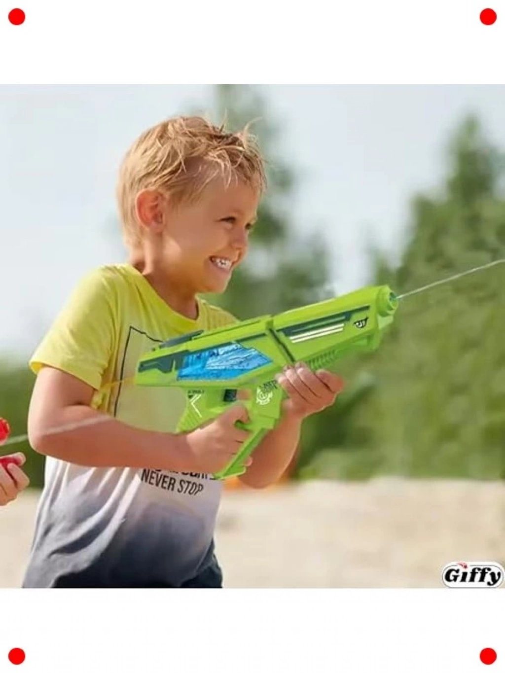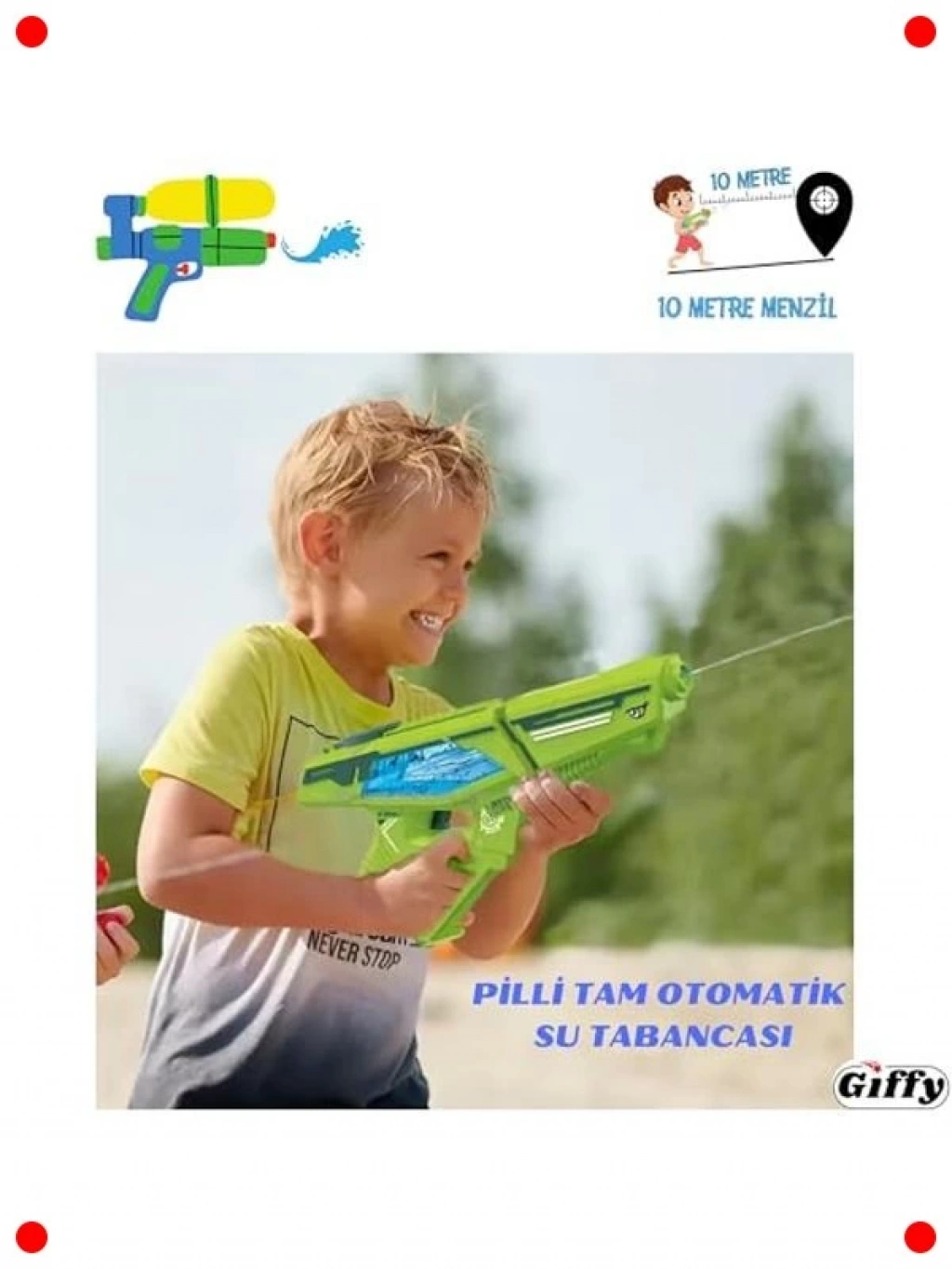 Sıcak yaz günlerinde serinletici ve eğlenceli bir aktivite arayanlar için ideal olan bu otomatik pilli su tabancası, güçlü atış menziliyle dikkat çekiyor. 10 metreye kadar uzanan etkileyici menzili ve 800 ml'lik geniş su haznesi sayesinde kesintisiz eğlence sunar. 40 cm'lik ergonomik tasarımıyla kolayca tutulabilir ve uzun süreli oyunlarda yorgunluk yaratmaz. Çocukların açık havada aktif zaman geçirmesini teşvik ederken, arkadaşlarıyla veya aileleriyle unutulmaz su savaşları yapmalarını sağlar. Dayanıklı ve eğlenceli bir yaz klasiği!