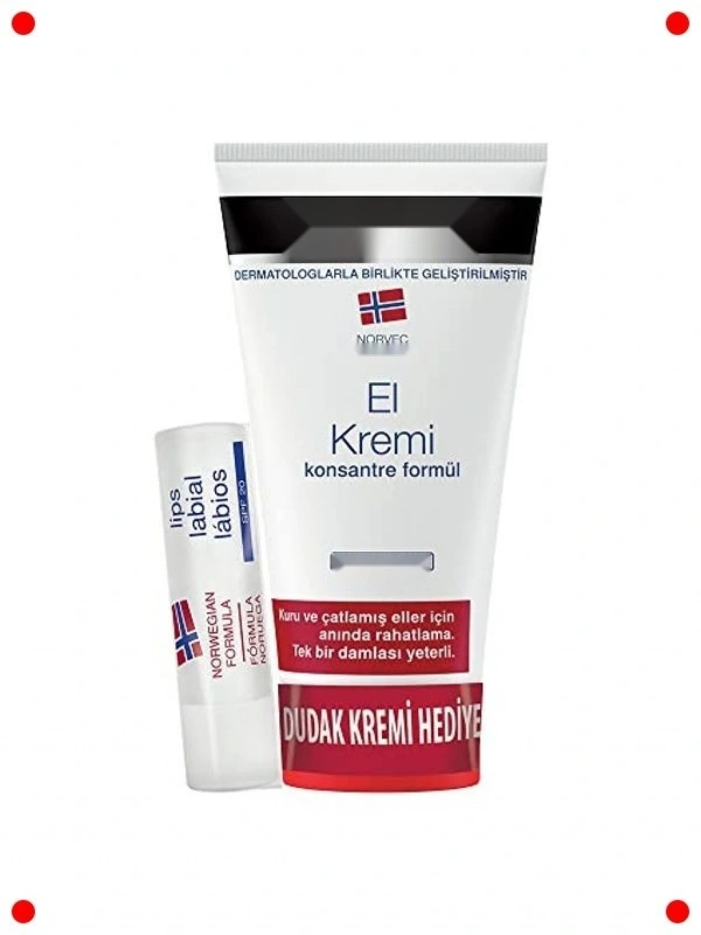 Kuru ve çatlamış ciltler için özel olarak geliştirilmiş bu Norveç Formülü el kremi ve dudak kremi seti ile cildinize yoğun bakım yapın. Parfümsüz formülü sayesinde hassas ciltler için bile uygundur. El kremi, cildinizi anında nemlendirir ve çatlakların onarılmasına yardımcı olarak uzun süreli rahatlama sağlar. Dudak kremi ise kurumuş ve çatlamış dudakları hızla nemlendirir, pürüzsüz ve sağlıklı bir görünüm kazandırır. Bu ikili set, soğuk karşı cildinizi koruyarak kapsamlı bir bakım sunar.