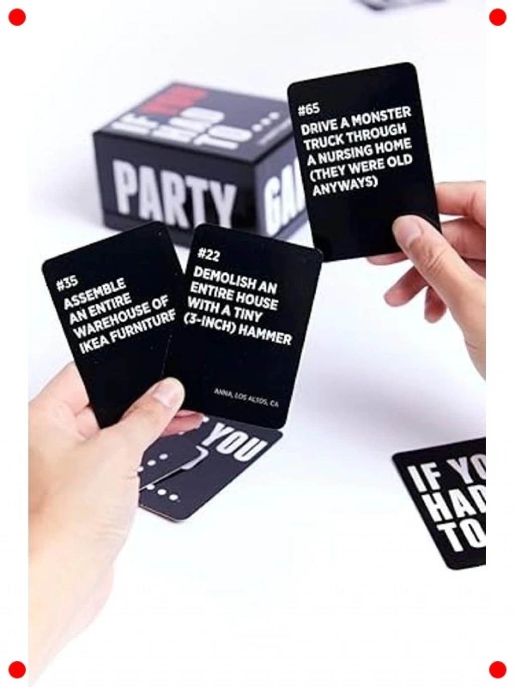 Arkadaşlarınızla unutulmaz anlar yaşamak için tasarlanmış bu parti oyunu ile eğlenceye hazır olun! Oyun, size ve arkadaşlarınıza 'Eğer zorunda kalsaydın...' temalı zorlayıcı senaryolar sunar. Oyuncular, en olası adayı seçerek birbirleri hakkında komik ve şaşırtıcı gerçekleri ortaya çıkarır. Herkesin birbirini ne kadar iyi tanıdığını test eden bu oyun, kahkaha dolu sohbetlere yol açar. Sosyal toplantılar, partiler veya arkadaş buluşmaları için mükemmeldir. Cesaret, dürüstlük ve bolca mizah içeren bu oyun, sıkıcı anları anında neşeye dönüştürecektir. Yüksek enerji ve interaktif deneyim arayanlar için idealdir.