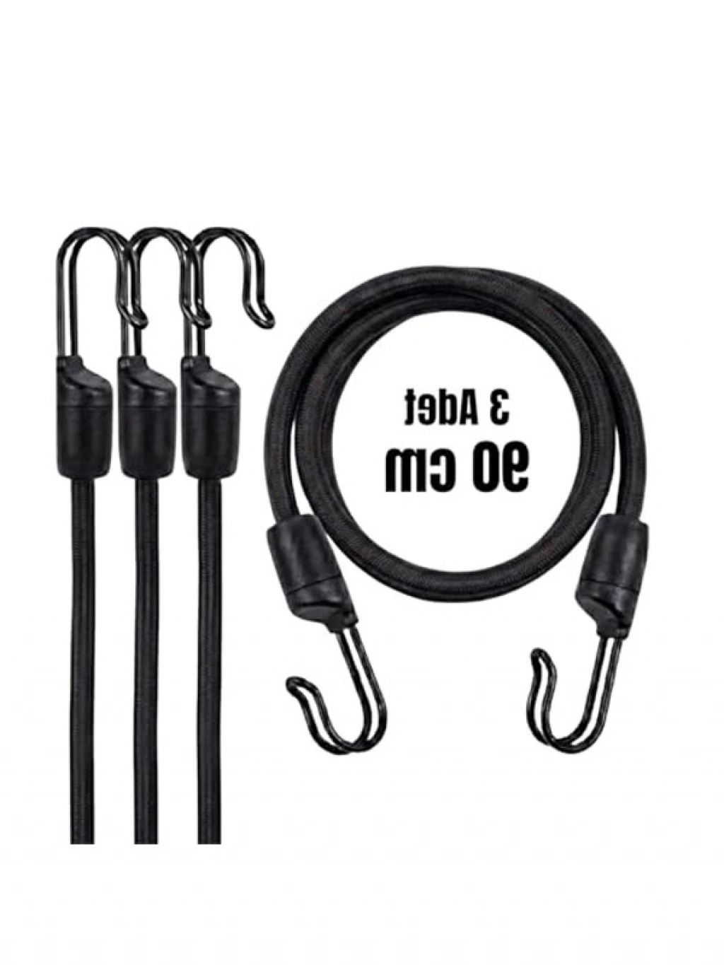 Paslanmaz çelikten üretilmiş çift kancalı gergi lastiği seti, 90 cm boyutuyla üç adet olarak sunulmaktadır. Araç, motosiklet ve bisiklet gibi farklı kullanım alanlarına uygun olarak tasarlanmıştır. Çift telli kancaları, maksimum dayanıklılık ve güvenli tutuş sağlar. Doğal kauçuk çekirdek, esneklik sunarken ani kopma riskini en aza indirir.