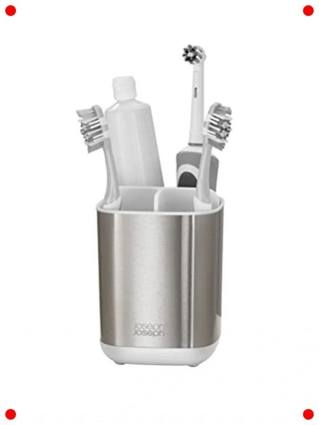 Banyonuzda düzeni ve hijyeni sağlamak için tasarlanmış bu şık paslanmaz çelik diş fırçalık ile tezgahınızı derli top tutun. Birden fazla diş fırçası ve diş macunu için yeterli alan sunar. Yüksek kaliteli paslanmaz çelik malzemesi, neme ve korozyona karşı dayanıklıdır, banyo ortamında uzun ömürlü kullanım sağlar. Alt kısmındaki drenaj delikleri, su birikmesini önleyerek fırçaların kuru kalmasına ve bakteri üremesini engellemeye yardımcı or. Modern ve nimalist tasarımı, her banyo dekorasyonuna uyum sağlar. Kolay tezlenebilir yapısıyla pratik bir çözümdür.