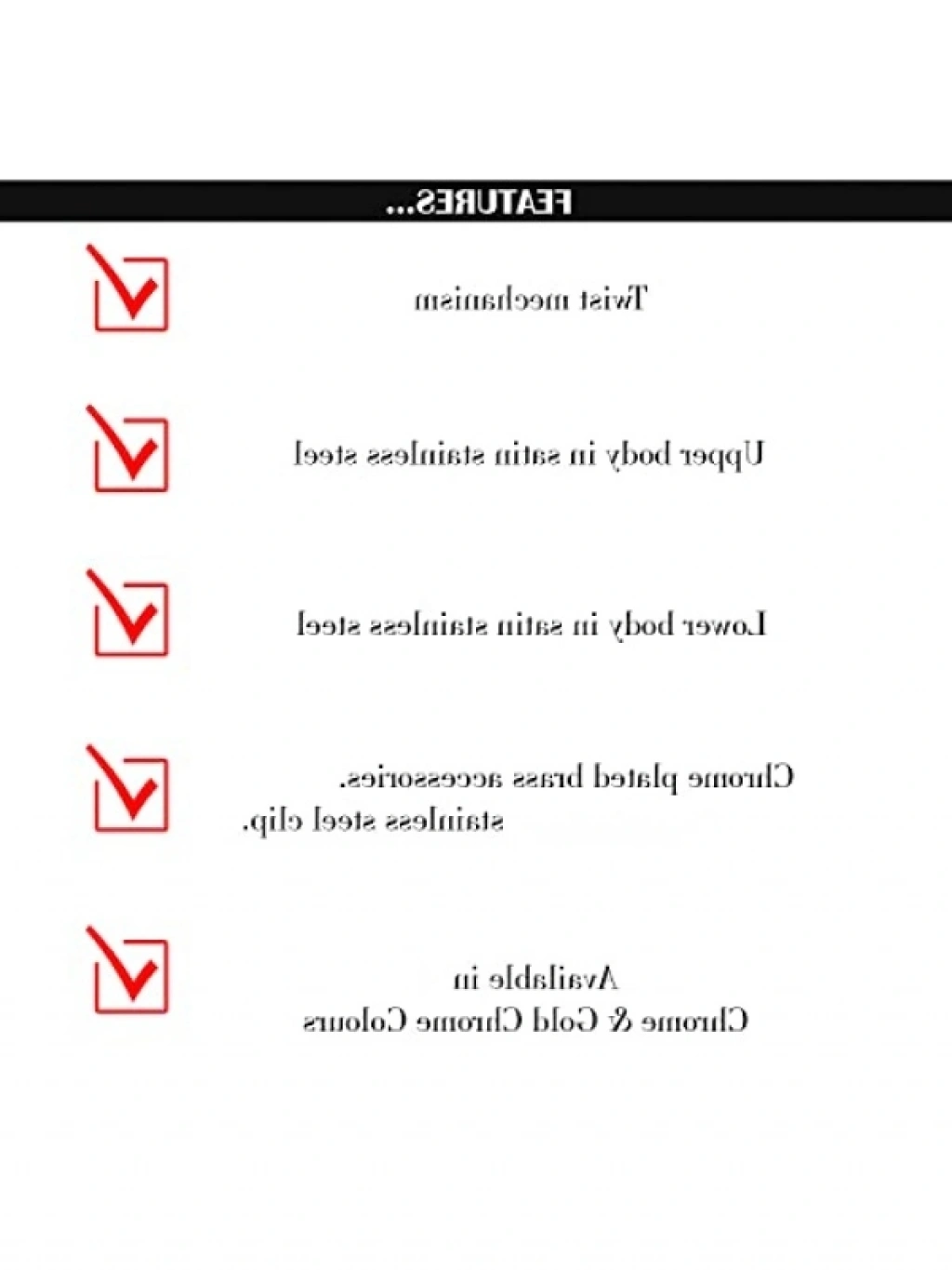 Türkiye menşeli bu versatil kalem, paslanmaz çelik kapak ve gövdeye sahiptir. Gizli silgisi sayesinde yazım sırasında oluşabilecek hataları kolayca düzeltebilirsiniz. Çevirmeli otomatik mekanizması ile kullanımı oldukça pratiktir. Parlak krom klips ve uç tasarımı, profesyonel görünüm sunar. Hem günlük kullanım hem de ofis ortamları için idealdir.