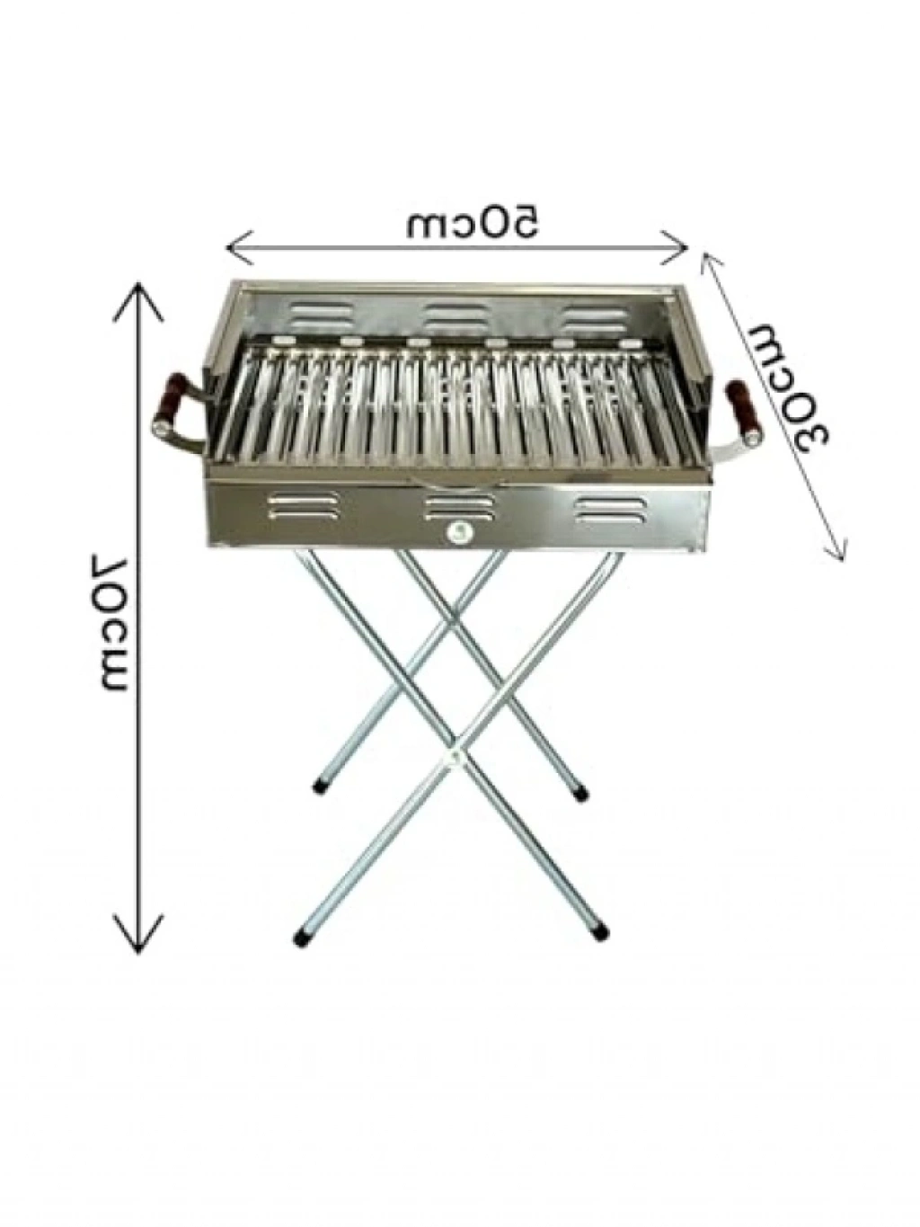 430 kalite paslanmaz çelikten üretilmiş katlanır mangal, 50 cm x 30 cm x 17 cm boyutları ile pratik bir kullanım sunar. Ayakları takılı halde 70 cm yüksekliğe ulaşarak konforlu bir pişirme deneyimi sağlar. Izgara ölçüsü 47 cm x 35 cm x 2 cm olan bu mangal, çantası ile birlikte gelir, böylece taşıma ve saklama kolaylığı sağlar. Dayanıklı yapısı sayesinde hem pikniklerde hem de kamp etkinliklerinde vazgeçilmez bir yardımcıdır.