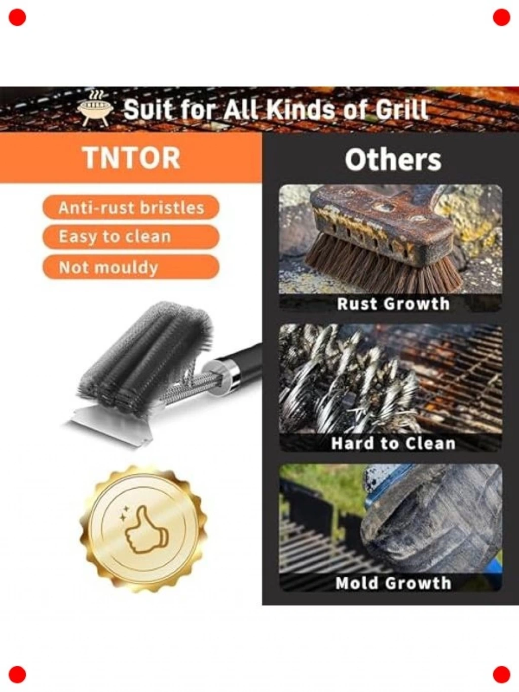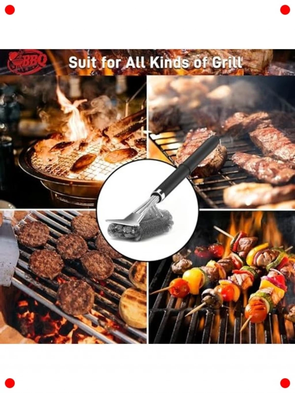 Mangal keyfinizin ardından temizlik artık bir eziyet olmaktan çıkıyor! Bu paslanmaz çelik mangal temizleme fırçası, entegre kazıyıcı özelliğiyle en inatçı yanmış kalıntıları bile kolayca temizlemeniz için tasarlandı. Sağlam paslanmaz çelik kılları, ızgara tellerinize zarar vermeden derinlemesine hijyen sağlar. Ergonomik tutacağı, rahat ve güvenli bir kavrayış sunarak temizlik sırasında daha fazla güç ve kontrol sağlar. Asılabilir metal tasarımı sayesinde mutfağınızda veya barbekü alanınızda kolayca saklanabilir. Barbekü ızgaranızı pas, kir ve yemek kalıntılarından arındırarak daha uzun ömürlü ve sağlıklı kullanıma hazır hale getirin. Her mangal severin olmazsa olmaz yardımcısıdır.