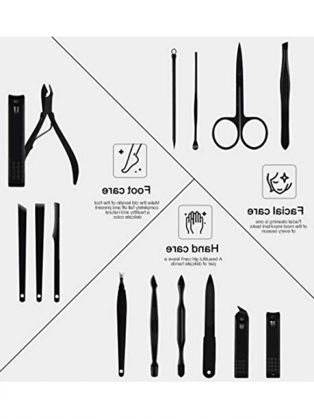 Bu manikür ve pedikür seti, yüksek kaliteli paslanmaz çelikten üretilmiştir ve tüm el ve ayak bakım ihtiyaçlarınızı karşılar. İçerisinde 15 adet farklı alet bulunur ve her yaştan kullanıcı için uygundur. Kolay taşınabilir yapısıyla seyahatlerinizde yanınıza alabileceğiniz bu set, ergonomik tasarımı ile rahat bir kullanım sunar. Dayanıklı deri kılıfı sayesinde hem şık hem de kullanışlıdır.