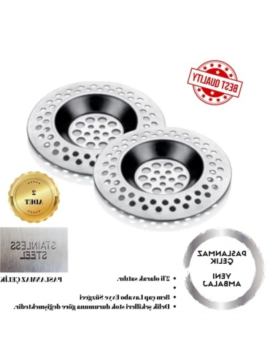 Paslanmaz çelikten üretilmiş bu mutfak lavabo süzgeçleri, dayanıklı yapısıyla uzun ömürlüdür. Gıda parçacıklarını etkili bir şekilde tutarak tıkanıklık oluşumunu önler. Temizlemesi kolay olan bu süzgeçler, çoğu evye ile uyumludur. Kullanışlı tasarımı sayesinde, yiyecek artıklarını rahatça boşaltmanıza yardımcı olur. Düşük profilli tasarımı, eski tip lavabolarla bile uyum sağlar.
