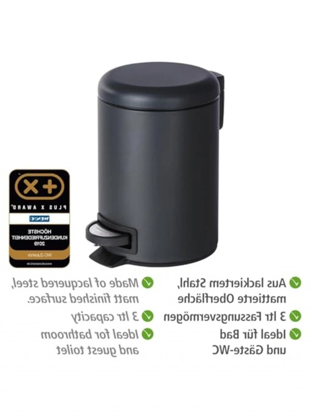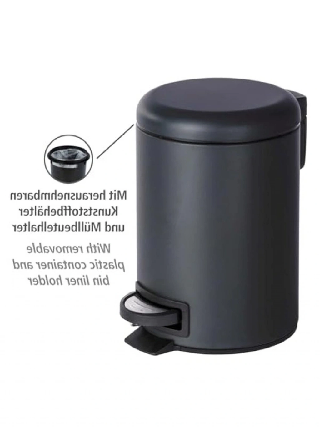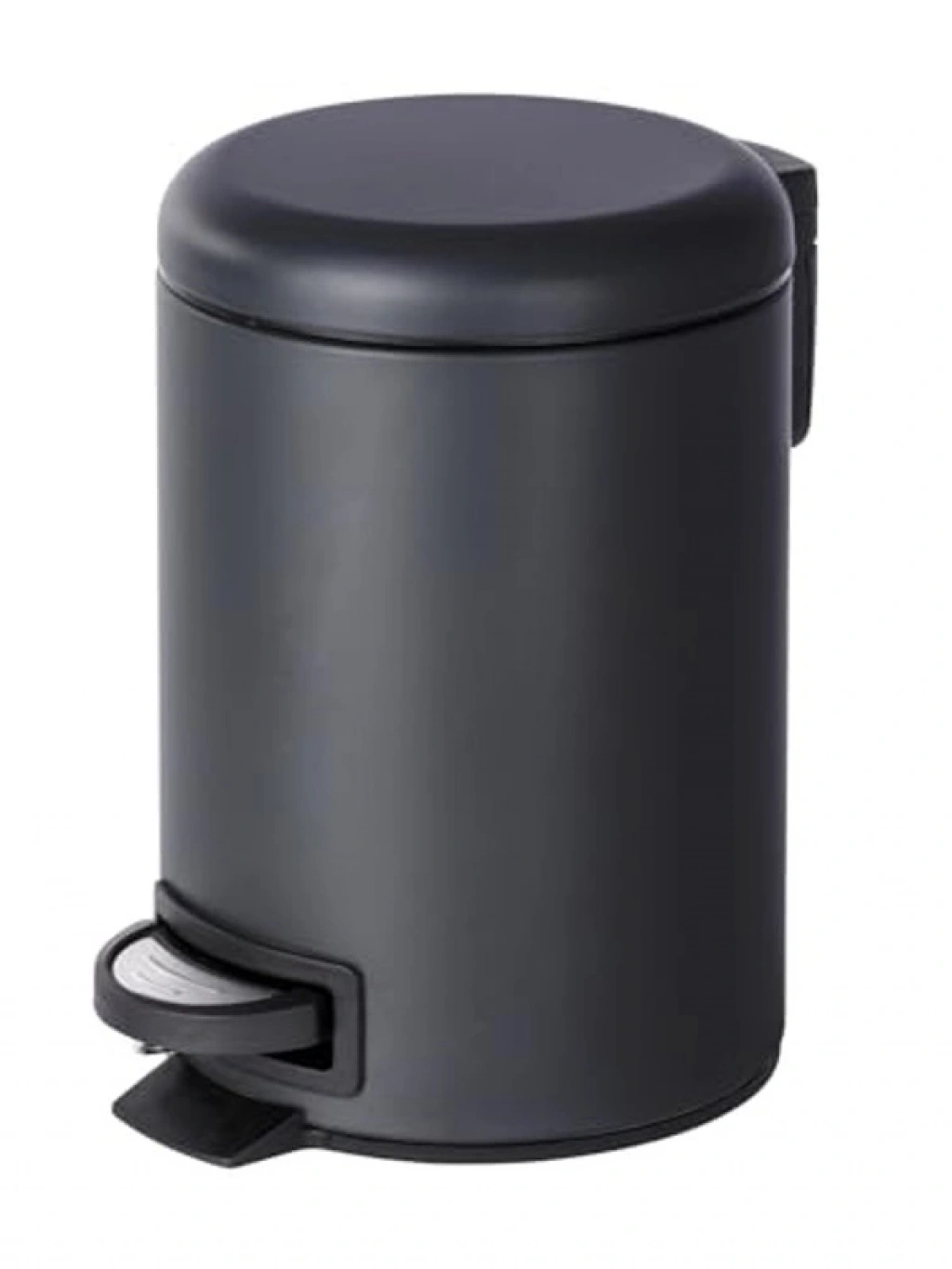 Mat siyah renkte paslanmaz çelikten üretilmiş 3 litre kapasiteli pedal çöp kutusu, banyo, tuvalet veya ofisler için ideal bir seçenektir. Kullanıcı dostu tasarımıyla çıkarılabilir plastik haznesi sayesinde temizliği kolaydır. Ölçüleri 17 x 25 x 22,5 cm olan bu çöp kutusu, şık ve işlevsel bir çözüm sunarak her ortama uyum sağlar.