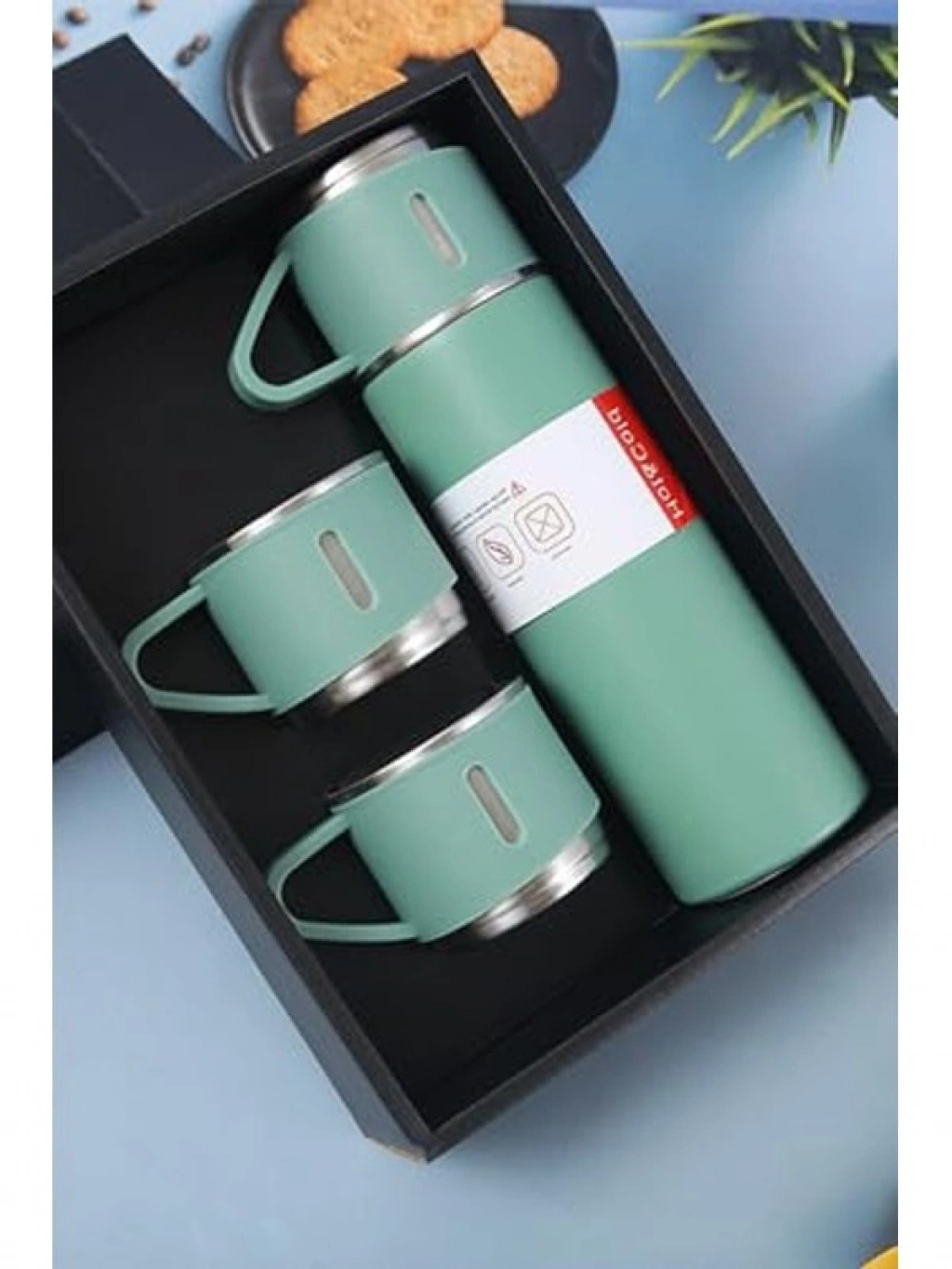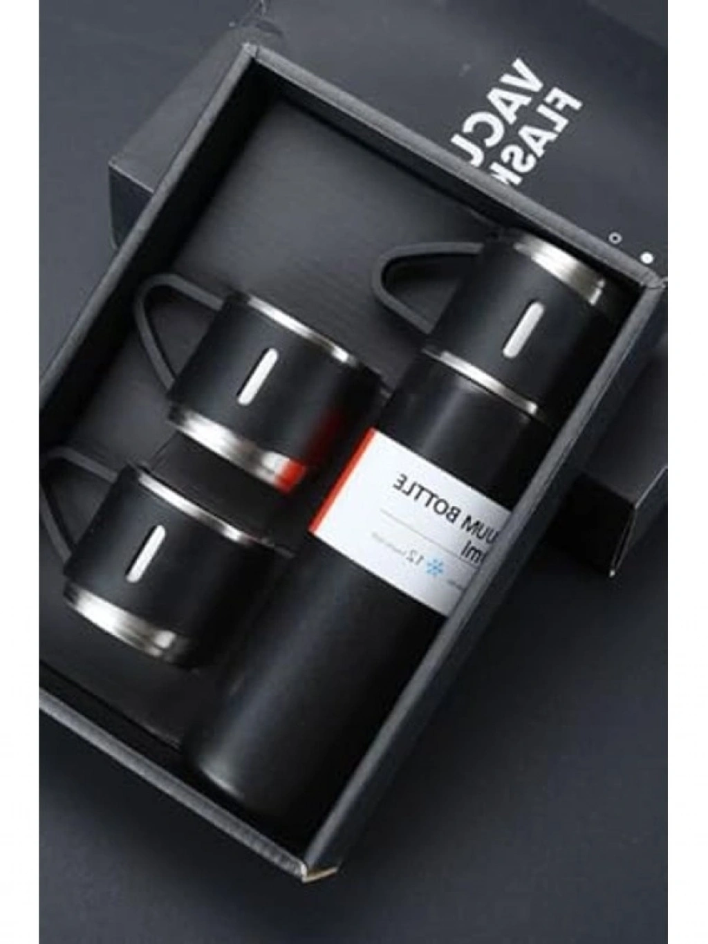 Paslanmaz çelik termos seti, 3 adet bardak ile birlikte gelir ve 500 ml kapasitesi ile sıcak ve soğuk içeceklerinizi 12 saat boyunca ideal sıcaklıkta tutar. Vakumlu yapısı sayesinde ısı yalıtımı sağlar. Özel kutusu, şık bir hediye alternatifi sunar ve taşıma kulpu ile rahatlıkla taşınabilir.