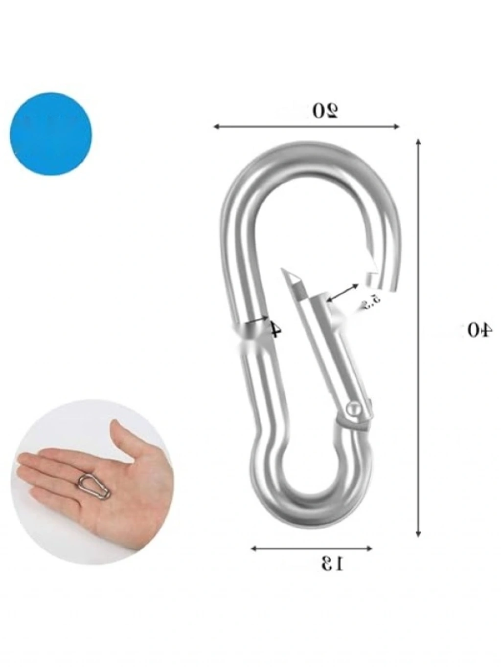 Bu paslanmaz çelik karabina, dayanıklı yapısı ile güvenilir bir kullanım sunar. 4 mm çapındaki yaylı tasarımı sayesinde kolayca açılıp kapanarak pratiklik sağlar. Tırmanma, dağcılık, kamp ve salıncak gibi etkinliklerde kullanmak için idealdir. Hafif ve taşıması kolay yapısıyla yanınızda rahatlıkla taşıyabilirsiniz. Güçlü yapısı sayesinde uzun ömürlüdür.