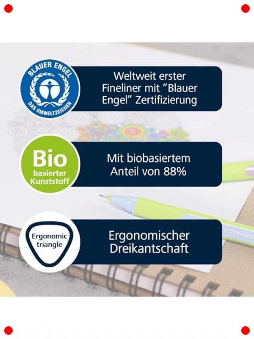 Notlarınızı renklendirmek, çizimlerinize hayat vermek veya planlayıcınızı süslemek için ideal olan bu 8 adetlik pastel ince uçlu kalem seti ile yaratıcılığınızı konuşturun. Çeşitli pastel tonları, belgelerinize nazik ve estetik bir dokunuş katarken, 0.4 mm'lik ince ucu detaylı ve hassas çalışmalar yapmanızı sağlar. Çevre dostu biyo-bazlı plastikten üretilmiştir, sürdürülebilir bir seçenektir. Mavi Melek gibi sertifikalarla onaylanmış bu kalemler, çevreye duyarlı bir ürün olduğunu gösterir. Hem öğrenciler hem de profesyoneller için mükemmel olan bu set, yazma ve çizme deneyiminizi zenginleştirir.