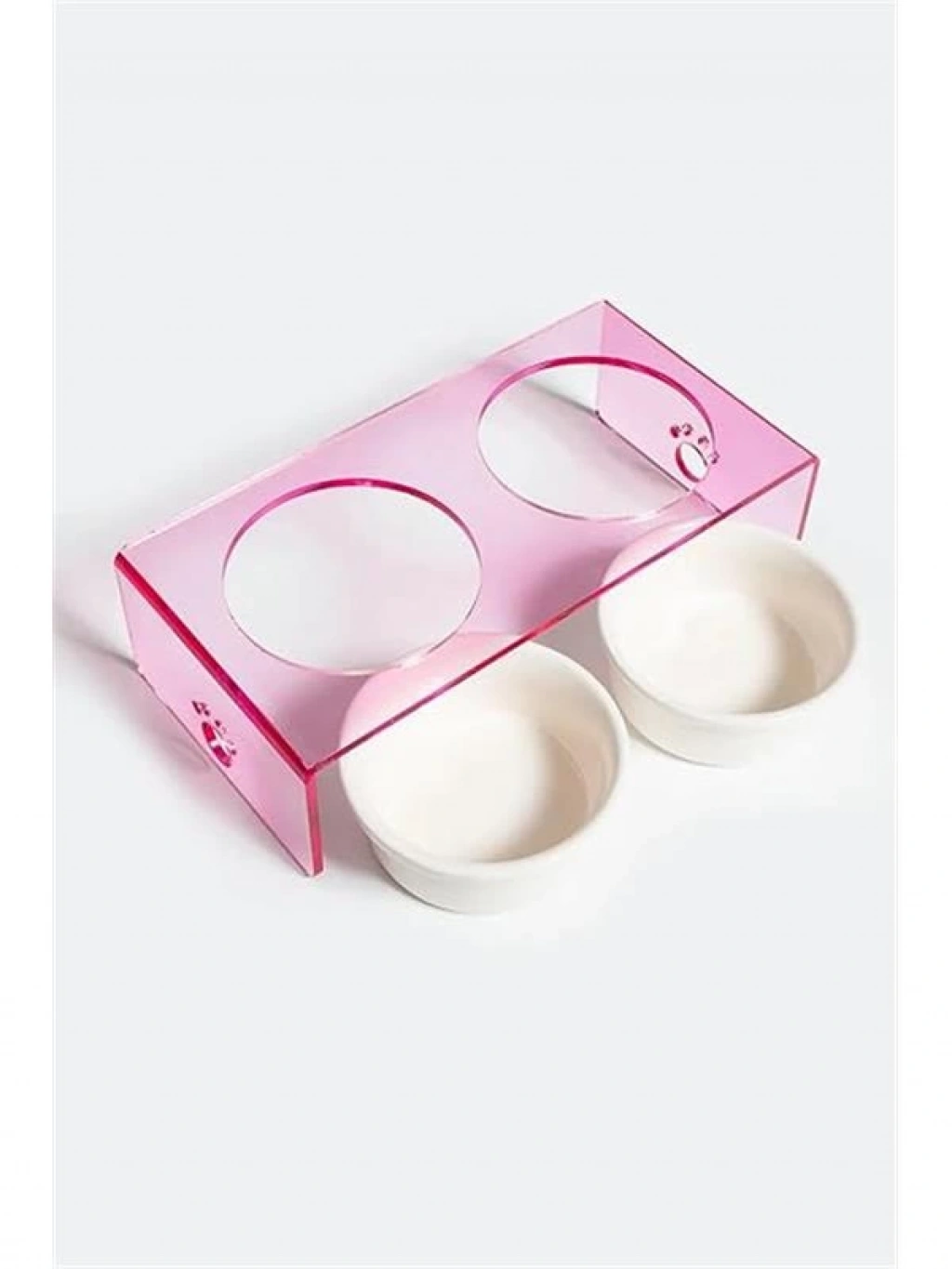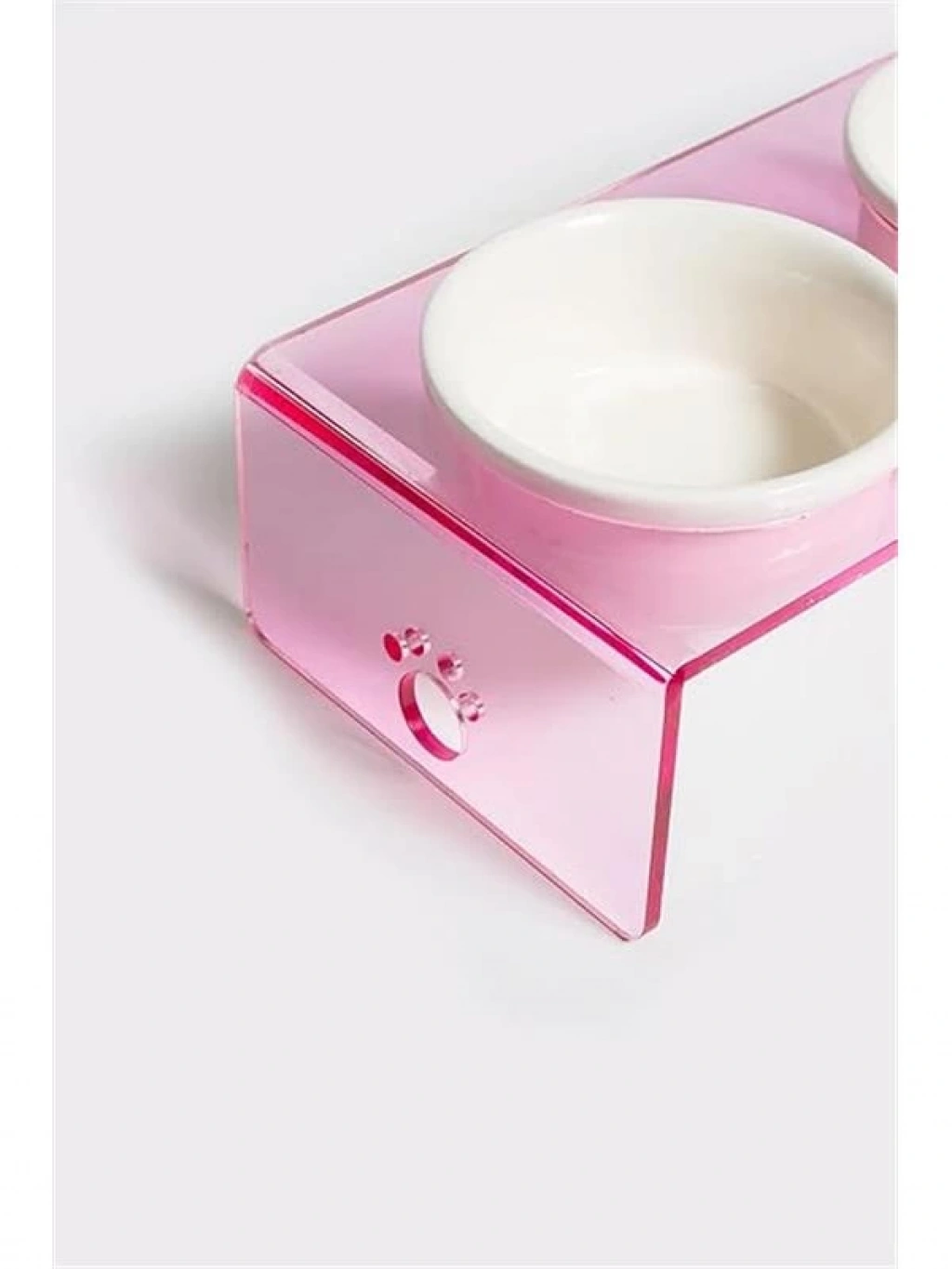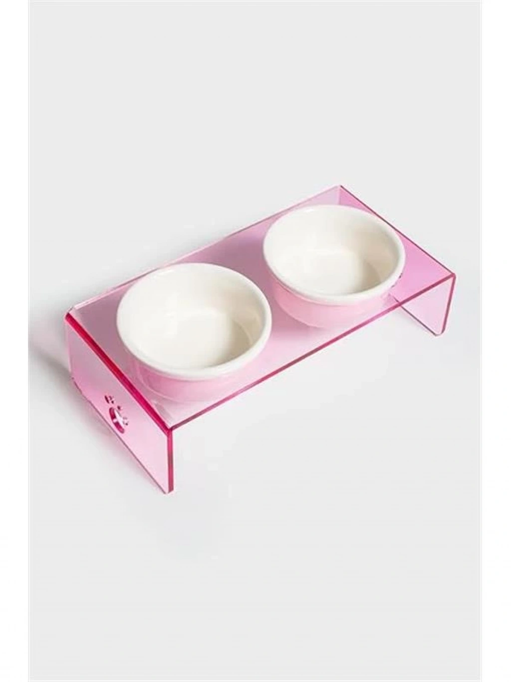 Pati Desenli Şeffaf Pleksi Ve Seramik İkili Mama Kabı 30x15 Cm (pembe)