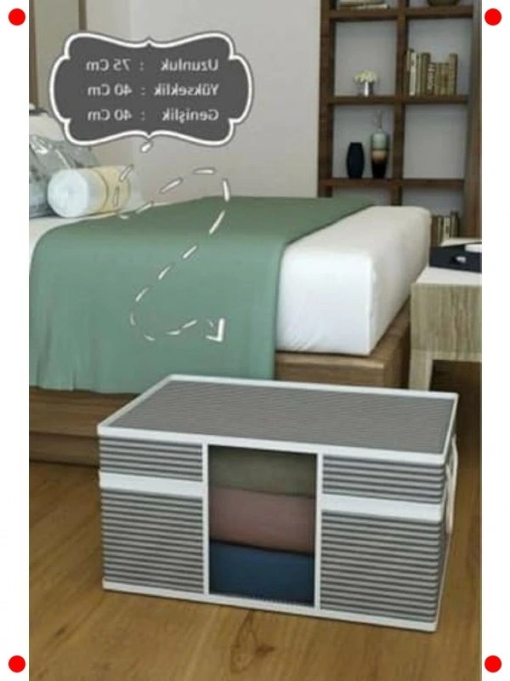 Eşyalarınızı düzenlemek ve depolamak hiç bu kr kolay olmamıştı! Mega boy pencereli düzenleyici saklama kutusu ile evinizdeki dağınıklığa veda edin. Geniş iç hac sayesinde mevsimlik kıyafetlerinizi, yorganlarınızı, nevresimlerinizi, oyuncaını veya diğer büyük eşyalarınızı rahatça saklayabilirsiniz. Şeffaf ön penceresi sayesinde kutunun içindeki eşyaları kapağı açmn görebilir, aradığınızı anında bulabilirsiniz. Katlanabilir yapısı kullanılmadığında yer kaplamaz. Ha alabilen ve dayanıklı kumaşı eşyalarınızı tozdan ve nemden korurken, pratik taşıma kulpları sayesinde kolayca taşınabilir. Evinizde düzeni sağlamanın şık ve fonksiyonel yo, yaşam alanlarınızı daha yaşanılır kılar.
