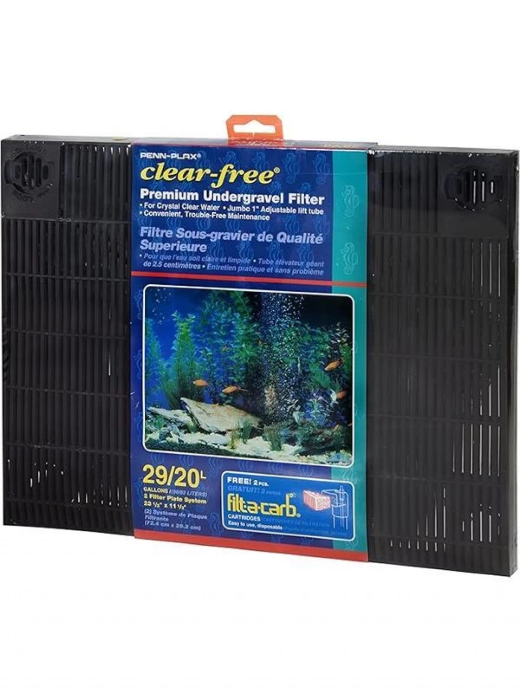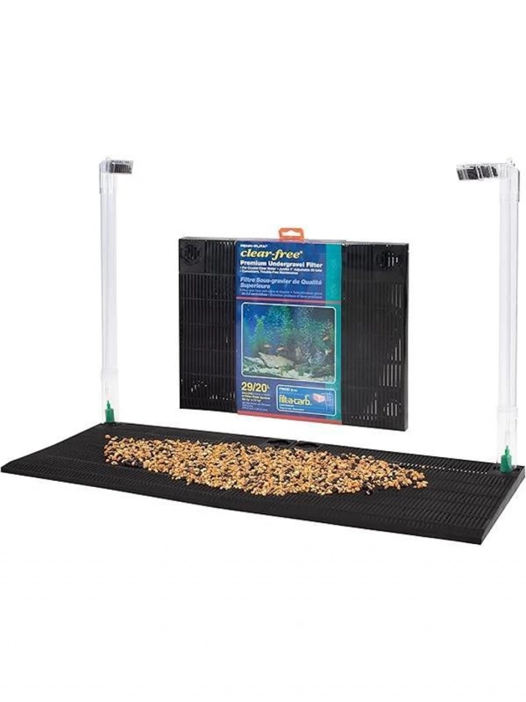 ESKİ OKULUN GİBİ HİÇBİR ŞEYİ ClearFree Premium Çakıl Altı Filtresi hava tahriklidir ve akvaryumunuzda kristal berraklığında su döngüsü yapmak için bir Hava Pompası (dahil değildir) kullanır ve içeride net ve temiz bir görünüm sağlar Bu basit ve kolay bakım sağlayan daha az hareketli parça olduğu anlamına gelir Bu filtre çoğu 20 (uzun) 29 galon akvaryum için uygundur BİYOLOJİK KİMYASAL VE FİZİKSEL FİLTRASYON Hava Taşlarından itilip Kaldırma Tüplerinden yükselirken su çakıl ve filtre plakalarından yavaşça emilir ve hem havanın hem de suyun FiltaCarb Aktif Karbon Kartuşlarından geçmesine izin verir Su çekilmeye devam ettiğinde anaerobik bakteriler çakıl ve filtre plakaları içinde toplanır ve kolonileşir AYRICA TANKINIZI HAVALANIR ClearFree Premium Under Gravel Filtre Hava Taşları ve Hava Pompası (dahil değildir) kullanılarak hava tahrik edildiğinden tankınızı da havalandırır Özünde akvaryumunuz aynı sistemde olsa aynı anda filtreleniyor ve havalandırılıyor İçinde bir filtre ve fıskiye 1 ÖĞELER DAHİL ClearFree Premium Çakıl Altı Filtre 2 Filtre Plakası 2 Ayarlanabilir Kaldırma Tüpü 2 Düz Havayolu Tüpü 3 Filtre Plakası Konnektörü ve 2 Değiştirilebilir FiltaCarb Aktif Karbon Ortam Kartuşu içerir ÖLÇÜMLER Her Filtre Plakası Ayrı 355 cm (G) x 282 cm (D) Filtre Plakaları Birlikte 28 (G) x 282 cm (D) Filtre Plakası Tabanındaki Her Kaldırma Borusu 13 16